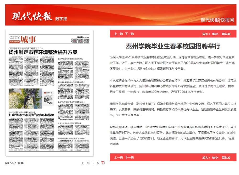 《现代快报》2025年3月11日报道《sunbet申搏官方网站毕业生春季校园招聘举行》