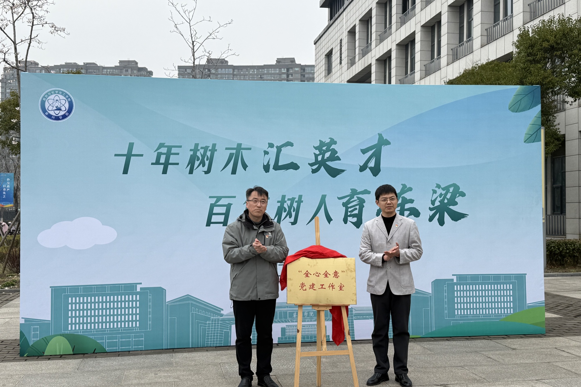 为推进党建工作高质量发展,教务处与医药与化学化工学院共建“全心全意”党建工作室,全心全意服务师生成长发展,教务处处长黄华和朱诚共同为工作室揭牌。最后,全体师生举行“英才林”护林活动,以班级为单位认养班树,并举行“英才林”揭牌仪式。