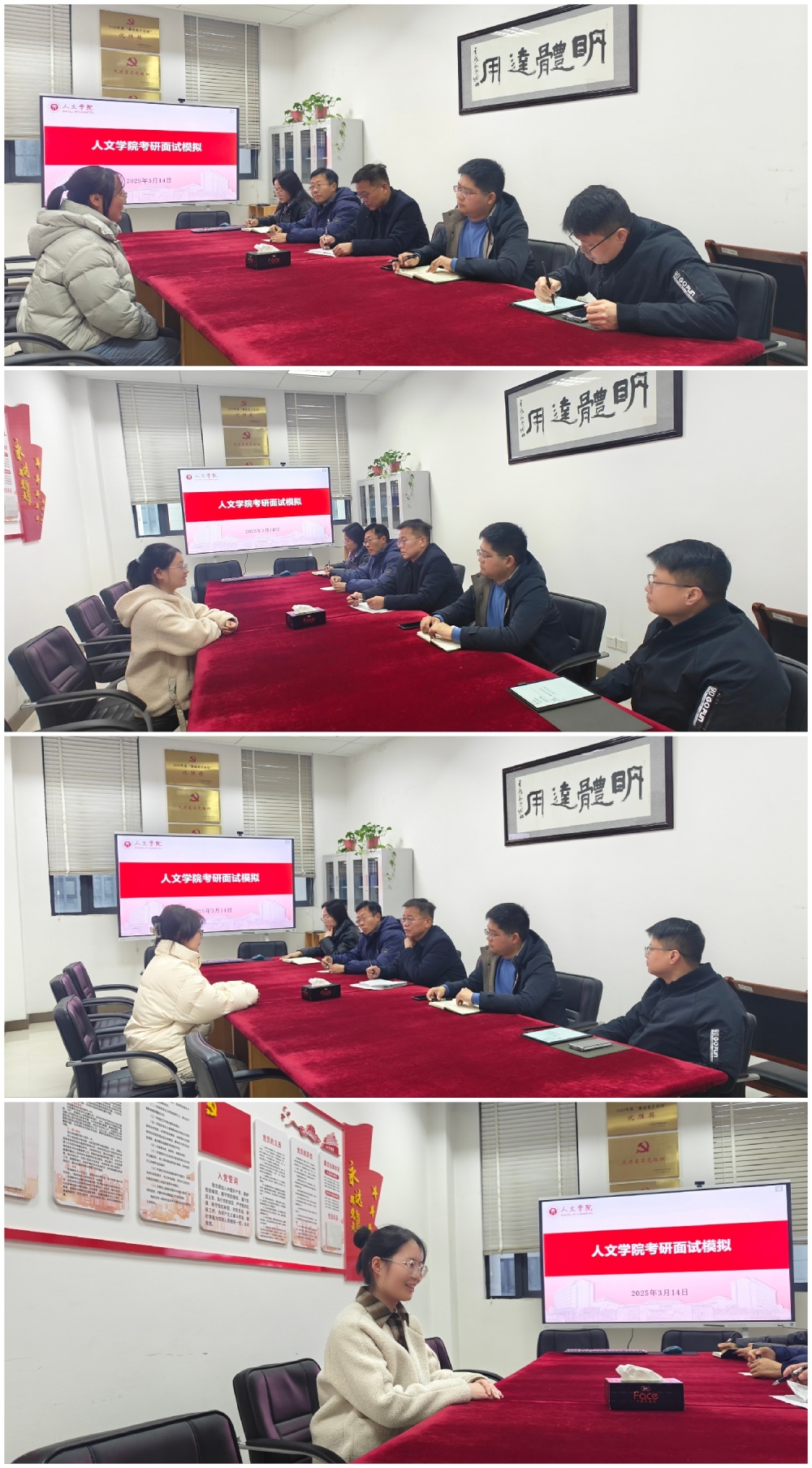 为持续做好2025届考研学生的指导和帮扶工作,帮助考生熟悉复试流程,掌握面试技巧,增强自信心和竞争力,3月14日下午,人文学院举办了考研复试模拟面试。面试考官由与考生专业匹配、拥有丰富面试经验的教授、博士生教师代表组成。