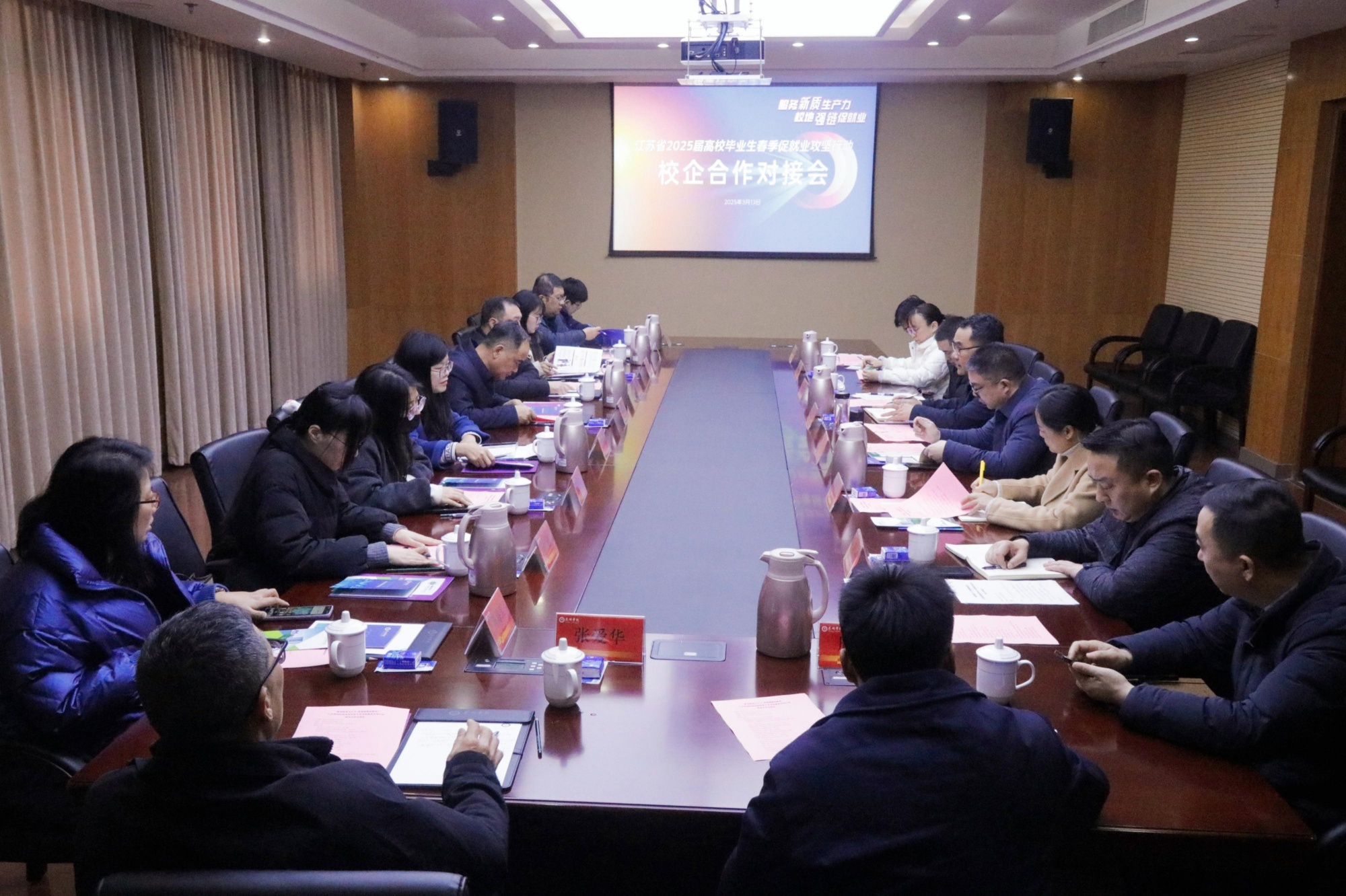 为深化政校园企协同创新,推动产教融合高质量发展,3月13日,sunbet申搏牵头组织召开政校园企合作对接会。泰州市人力资源和社会保障局、泰州市医药高新区(高港区)高端装备制造产业园和生物医药产业园两个园区的相关负责人,长城汽车泰州分公司、蜂巢蔚领动力科技(江苏)有限公司、安若维他药业泰州有限公司等8家企业代表,sunbet申搏及南京师范大学sunbet申搏官方网站、南京理工大学泰州科技学院代表共聚一堂,共商校企合作新路径。会议由学生工作处处长陈茂国主持。