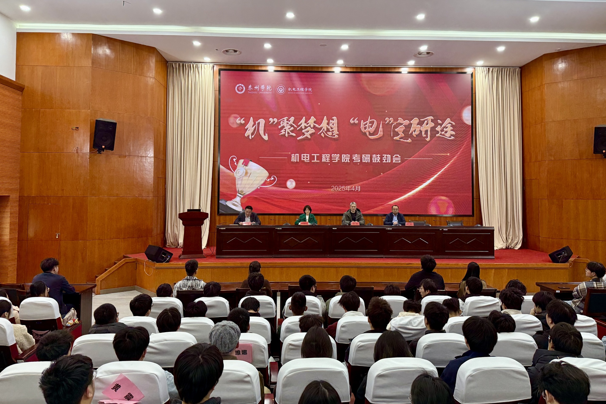 “机”聚梦想,“电”定研途。4月2日,机电工程学院在D1216会议室举办了2026届毕业生考研鼓劲会。机电工程学院领导班子、全体辅导员、班主任出席会议。2025届考研成功学生代表及2026届百余名备战考研学子齐聚一堂,共启研途新章。