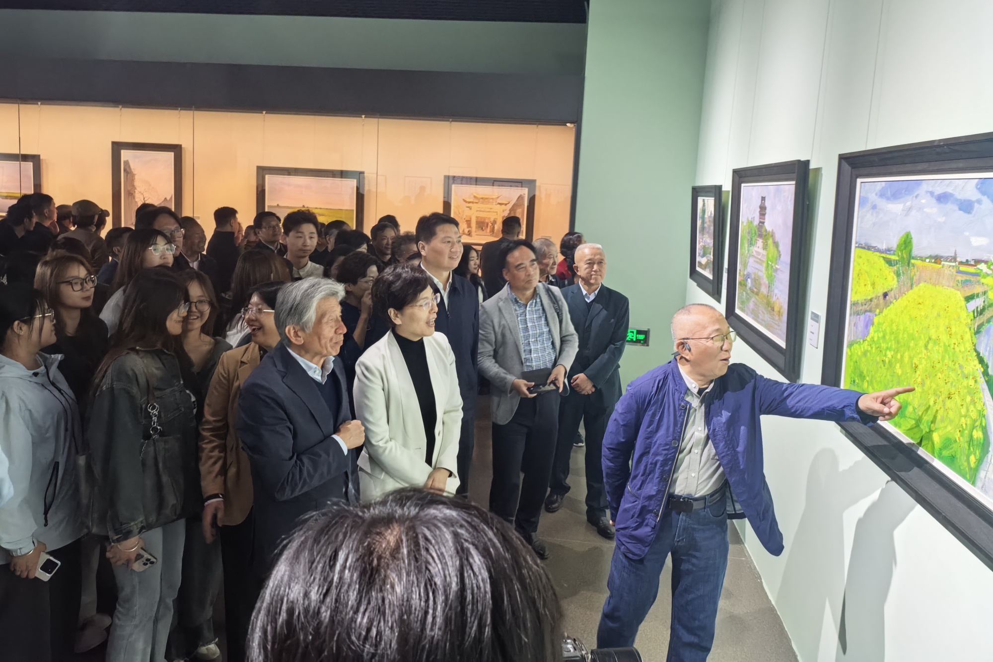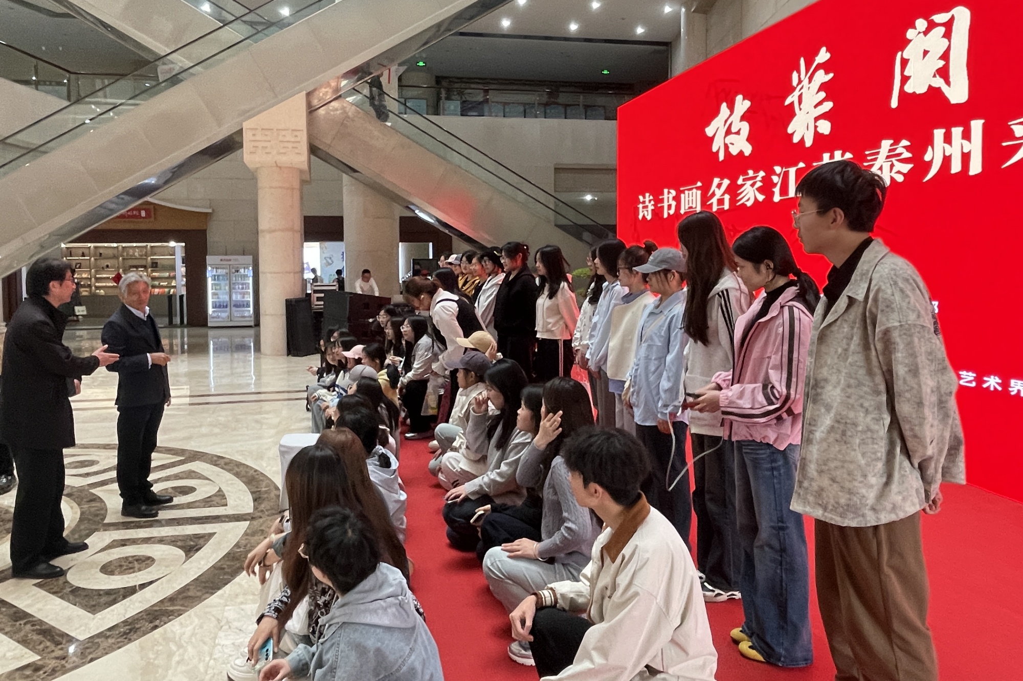 4月6日下午,“枝叶关情”诗书画名家江苏泰州采风作品展在泰州市美术馆开幕。此次展览星光熠熠,汇聚了中国美术家协会主席范迪安、中国书法家协会主席孙晓云、中华诗词学会会长周文彰等多位艺术名家的作品。在全国人大代表、美术学院院长黄平教授带领下,sunbet申搏美术学院段庆、祁秋实等教师代表参加了前期的艺术采风活动,50余名师生代表参加了展览开幕式。