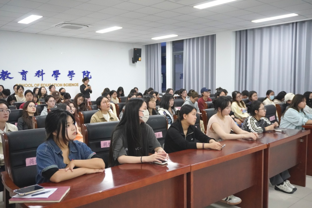 为助力学前教育专业毕业生精准把握考编形势,4月9日,教育科学学院邀请泰州市幼儿园园长马洁莅临学校,开展考编培训讲座。讲座由教育科学学院副院长徐莹莹主持,2025届学前教育专业毕业生参加。
