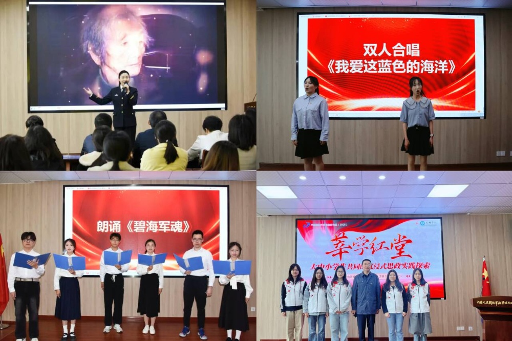 活动中,双方进行了精彩的红色文化展演。纪念馆讲解员深情讲述《我想成为你》;教育科学学院学生带来诗朗诵《碧海军魂》和合唱《我爱这蓝色的海洋》。