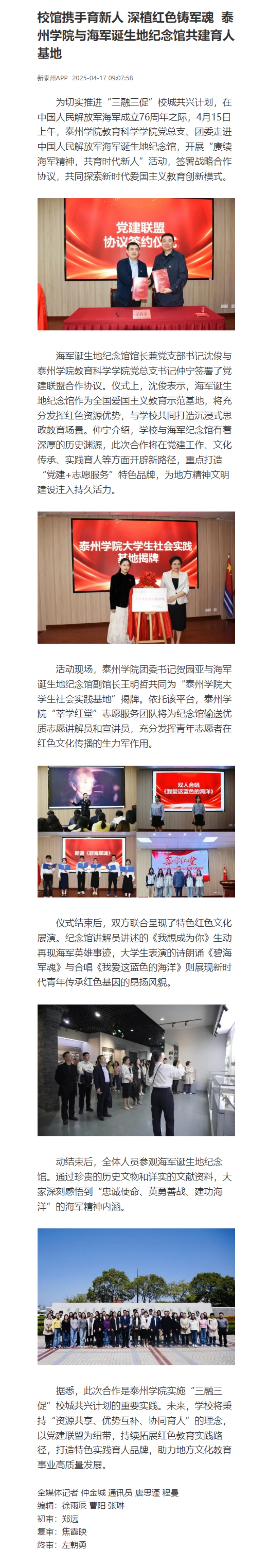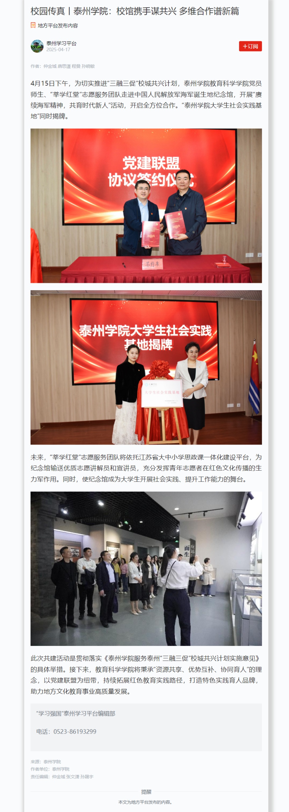 《学习强国》《新泰州》2025年4月17日报道《sunbet申搏官方网站:校馆携手谋共兴 多维合作谱新篇》