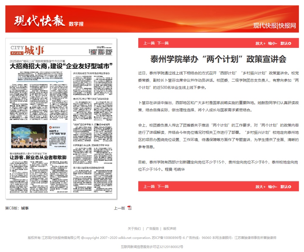 《现代快报》2025年4月18日报道《sunbet申搏官方网站举办“两个计划”政策宣讲会》
