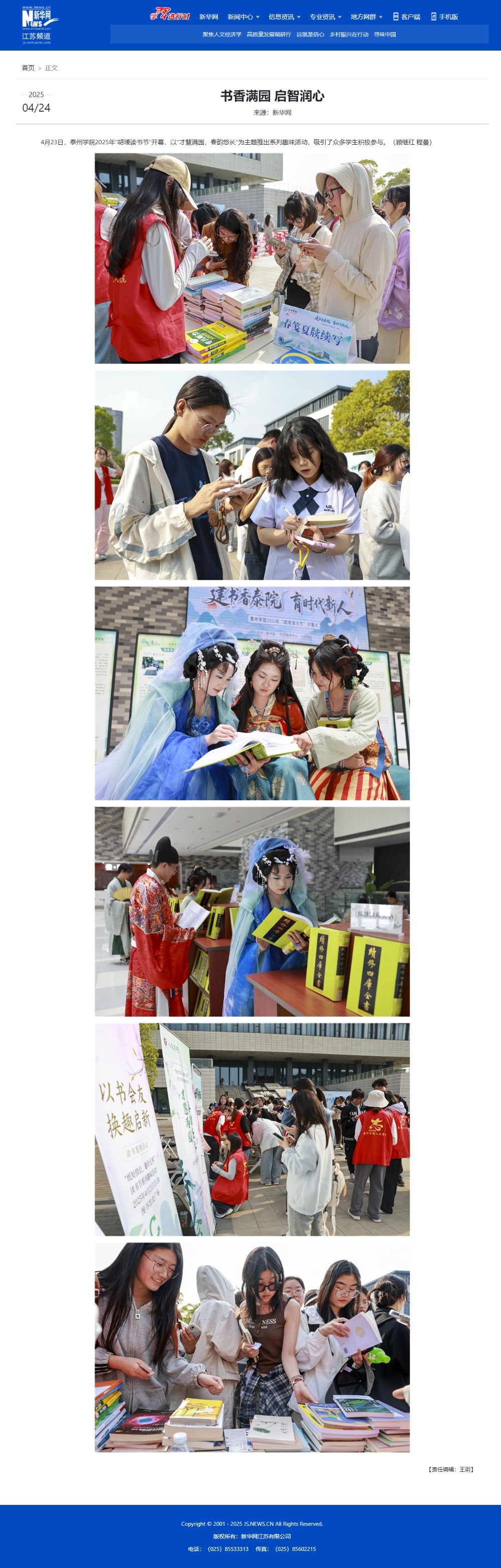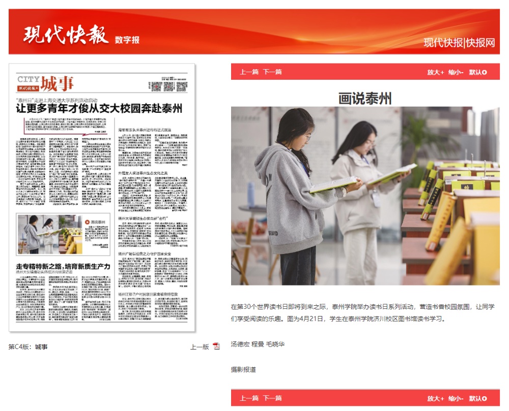 2025年4月22日-24日,《现代快报》《泰州晚报》《新华网》多家媒体报道sunbet申搏读书节系列活动