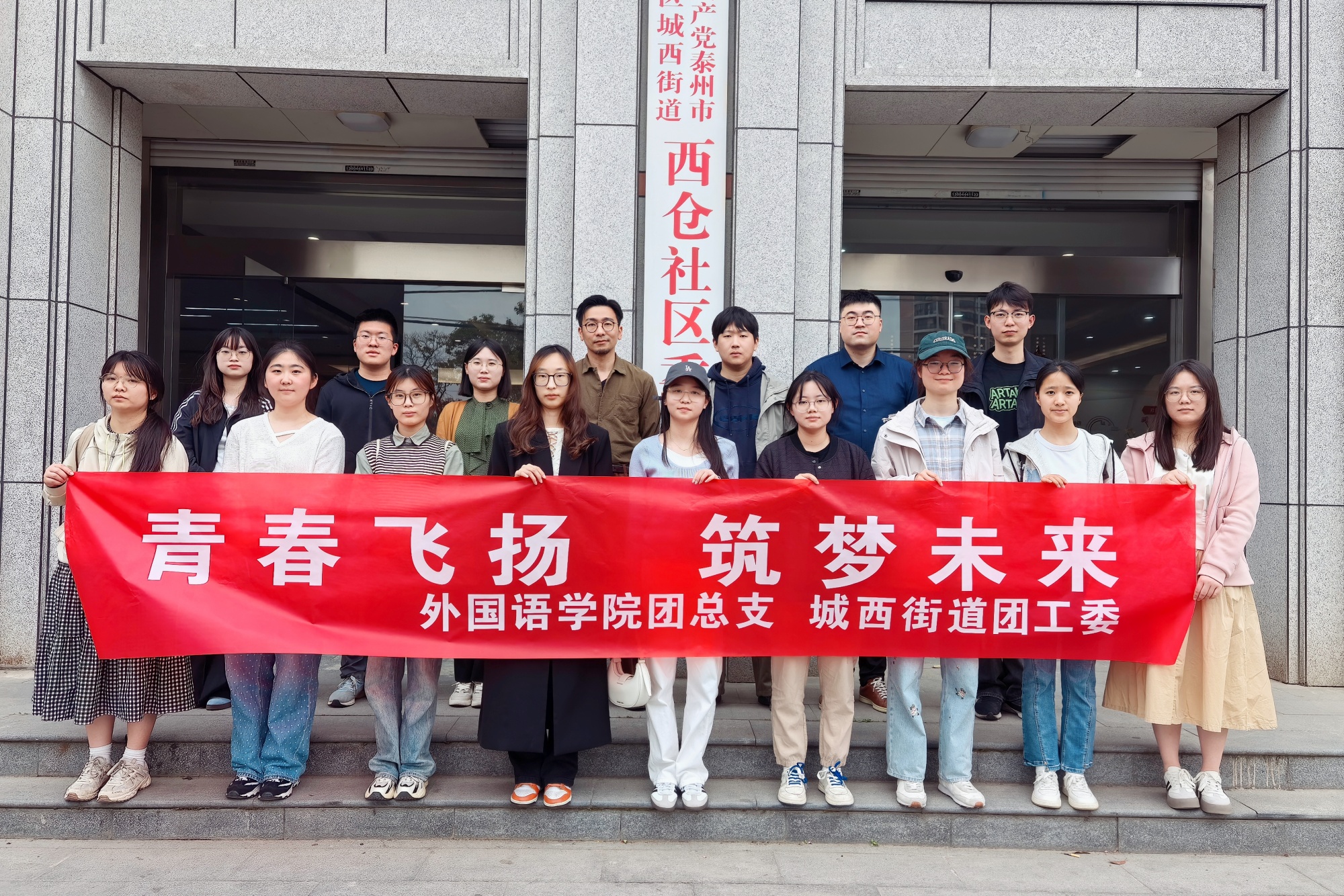 为弘扬五四精神,凝聚青年力量,4月27日,外国语学院与城西街道联合开展“青春飞扬 筑梦未来”主题实践活动。