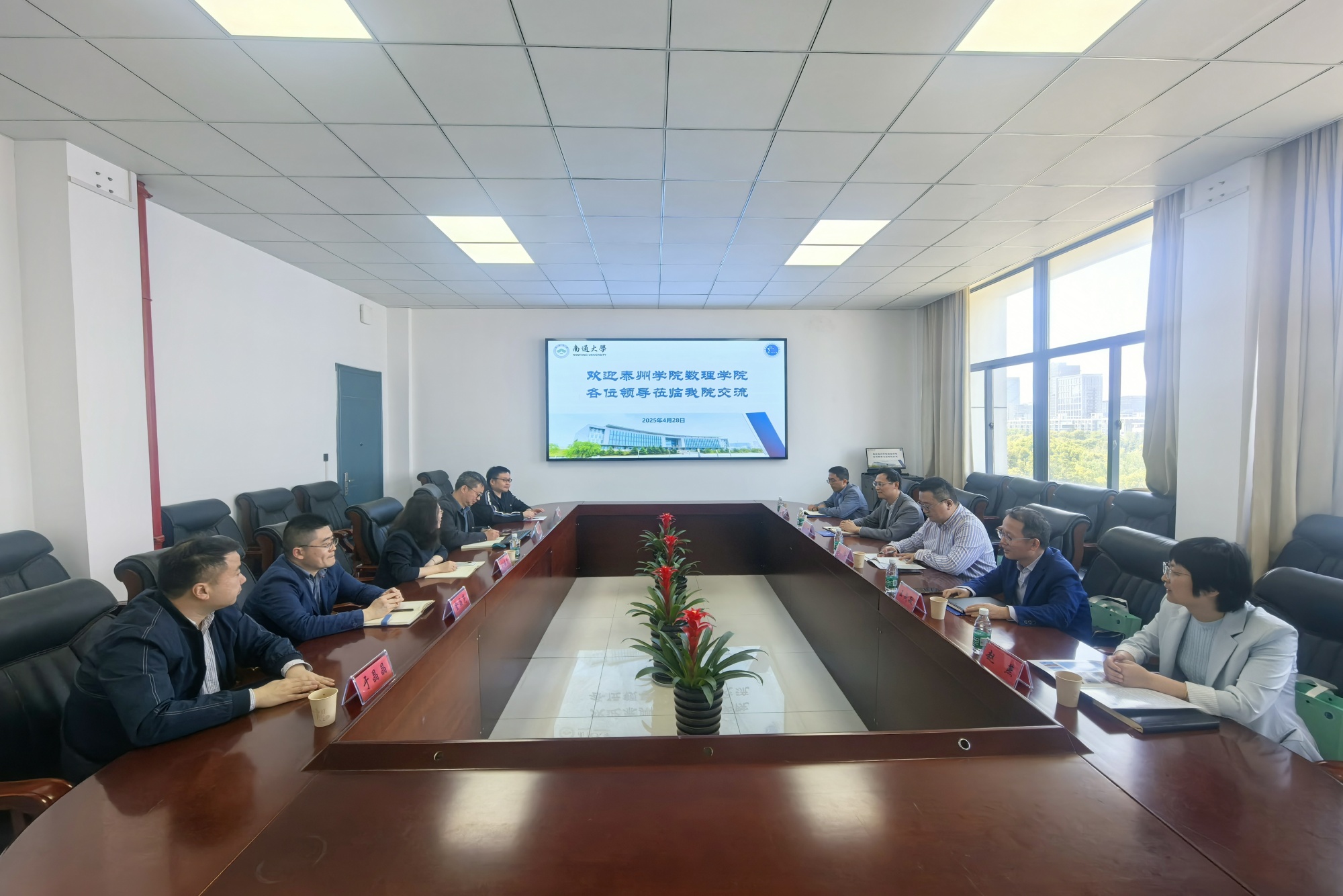 4月28日,数理学院党总支书记江峰、院长王成敏等一行5人赴南通大学数学与统计学院学习交流。