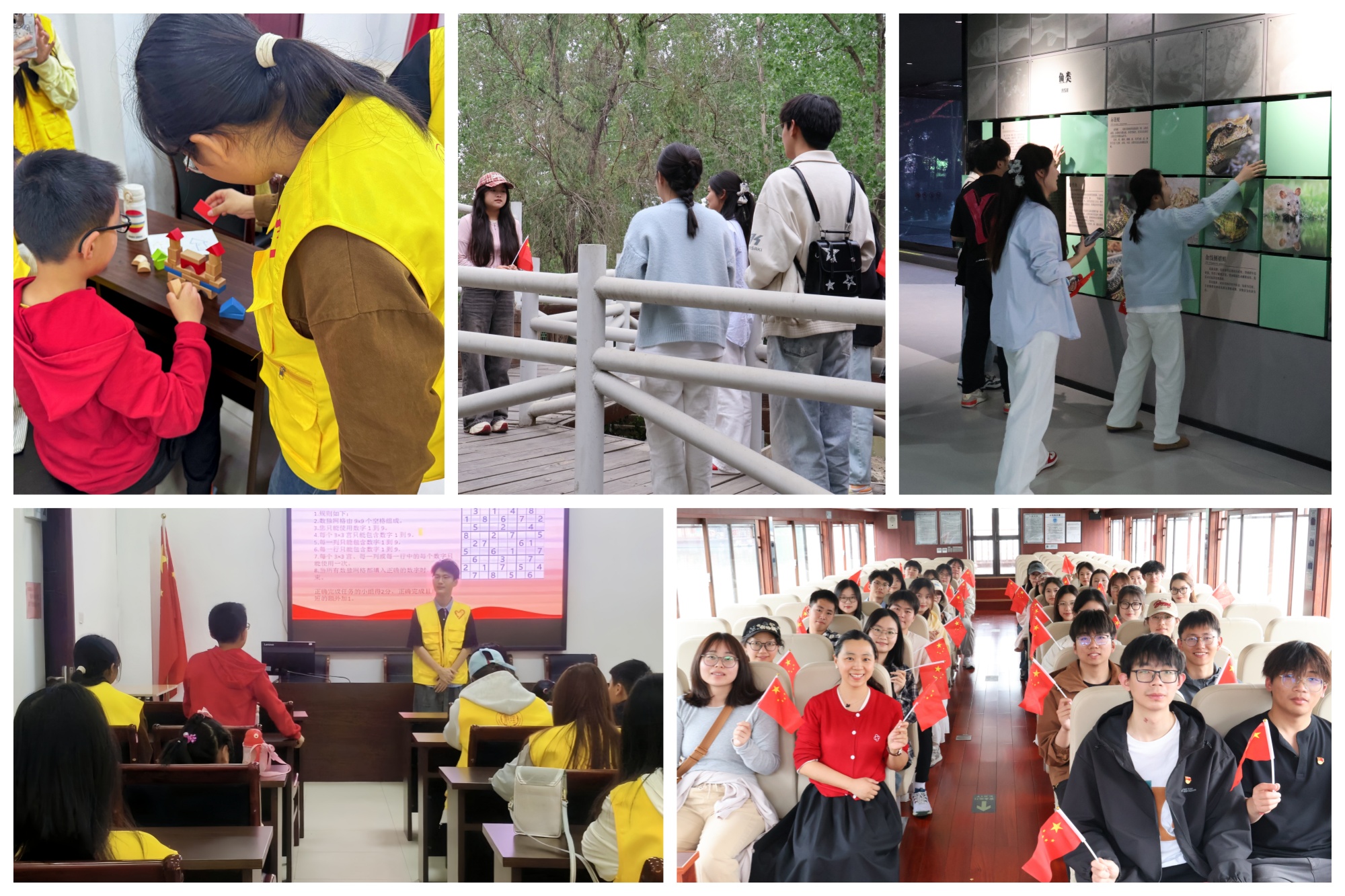 宣讲结束后,同学们带领小朋友们开展趣味活动。数字迷宫、团队建模等游戏有序开展,大家运用逻辑推理寻找正确路线,手把手指导小朋友用数学思维搭建模型。同学们充分发挥专业特长,与小朋友们紧密协作,共同攻克一道道难题。活动不仅展现了数理学科的独特魅力,更让小朋友们感受到学习的乐趣,也让同学们在实践中体会到用专业知识服务社会的价值,尽显青春活力与创新风采。