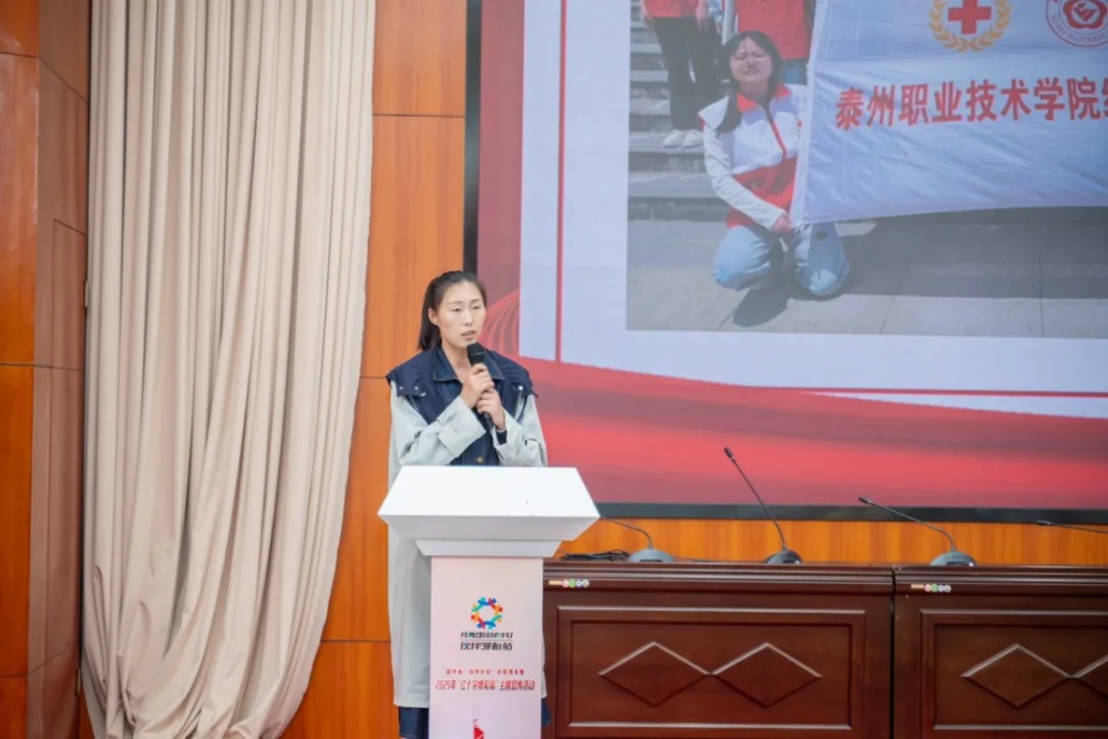 在“博爱青春”志愿服务省级获奖项目宣讲环节,市青联常委、泰州职业技术学院王云老师分享了该校志愿者深入社区、乡村开展服务的感人故事。