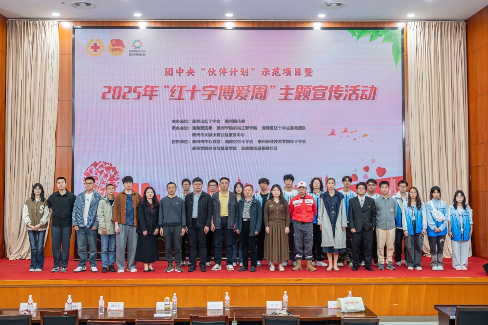 为深入践行“人道、博爱、奉献”的红十字精神,纪念第78个“世界红十字日”,5月8日,由泰州市红十字会、泰州团市委主办,海陵团区委、sunbet申搏机电工程学院、海陵区红十字应急救援队、泰州市大城小爱公益服务中心承办的团中央“伙伴计划”示范项目暨2025年“红十字博爱周”主题宣传活动在学校明达楼D1216会议室成功举办。此次活动吸引了sunbet申搏、江苏农牧科技职业学院、泰州职业技术学院、南京理工大学泰州科技学院师生代表以及市青联委员代表、社区青年代表等200余人参与。