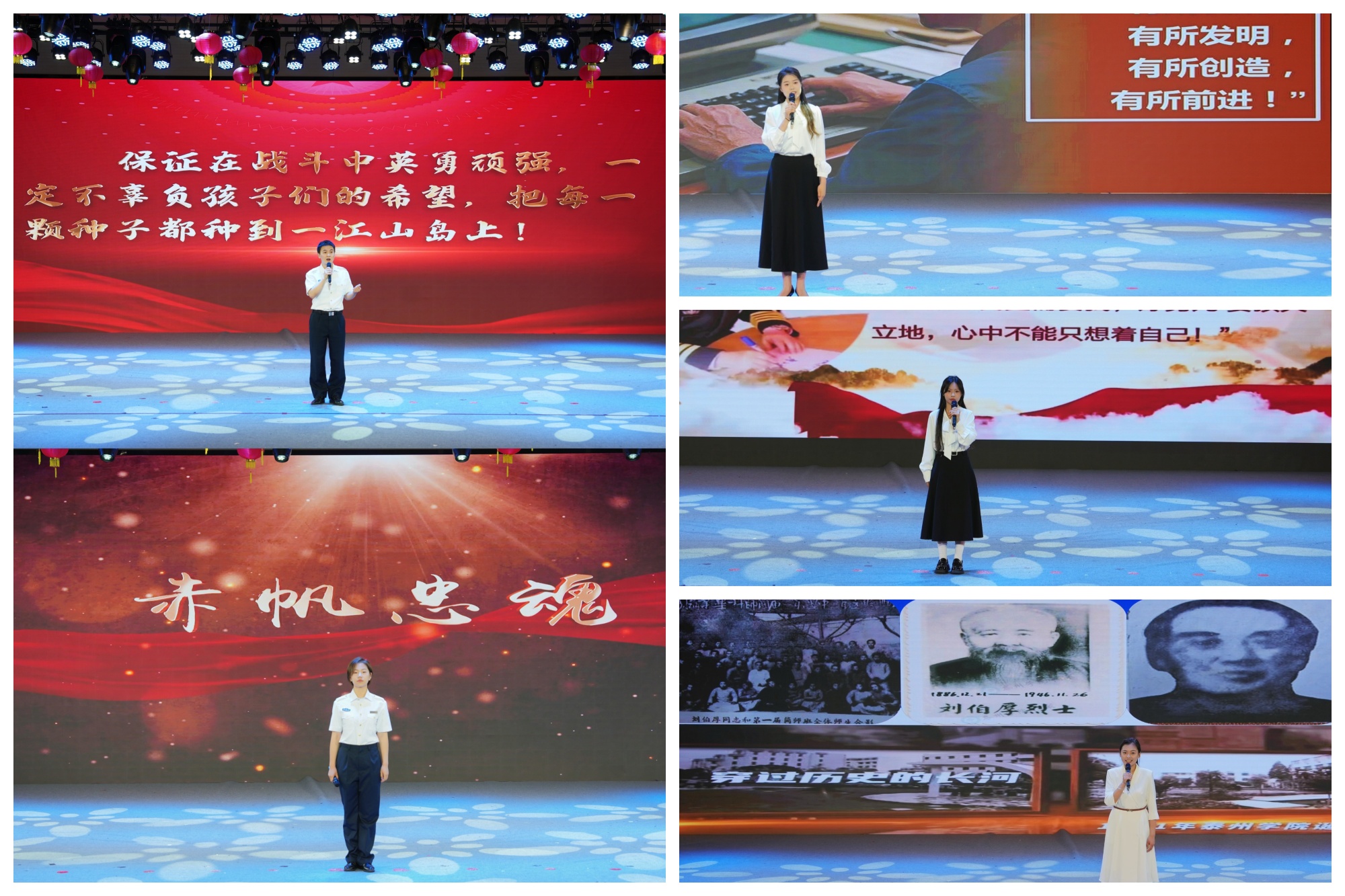 海军诞生地纪念馆宣讲员通过珍贵的历史影像资料和生动的讲解,为师生们呈现了一堂别开生面的红色思政课。宣讲员以《血染的种子》为题,通过“一把种子”的感人故事,深情讲述了解放一江山岛部队浴血奋战的英勇事迹;《赤帆忠魂》故事则生动诠释了人民海军“忠诚如赤焰燃烧,精神似帆影永存”的崇高精神。教育科学学院学生代表紧扣红色主题,讲述了守礁卫士李文波二十年如一日驻守永暑礁的事迹,他舍小家为国家的坚守令人钦佩;《方块之间,汉字突围》中,生于泰州海陵的支秉彝院士在逆境中发明“见字识码”、推动汉字信息处理技术突破的创新担当令人赞叹;《守教育初心 育桃李万千》里,一代代泰院师生坚持教育初心、扎根教育一线的实践,彰显了新时代育人使命的璀璨光芒。