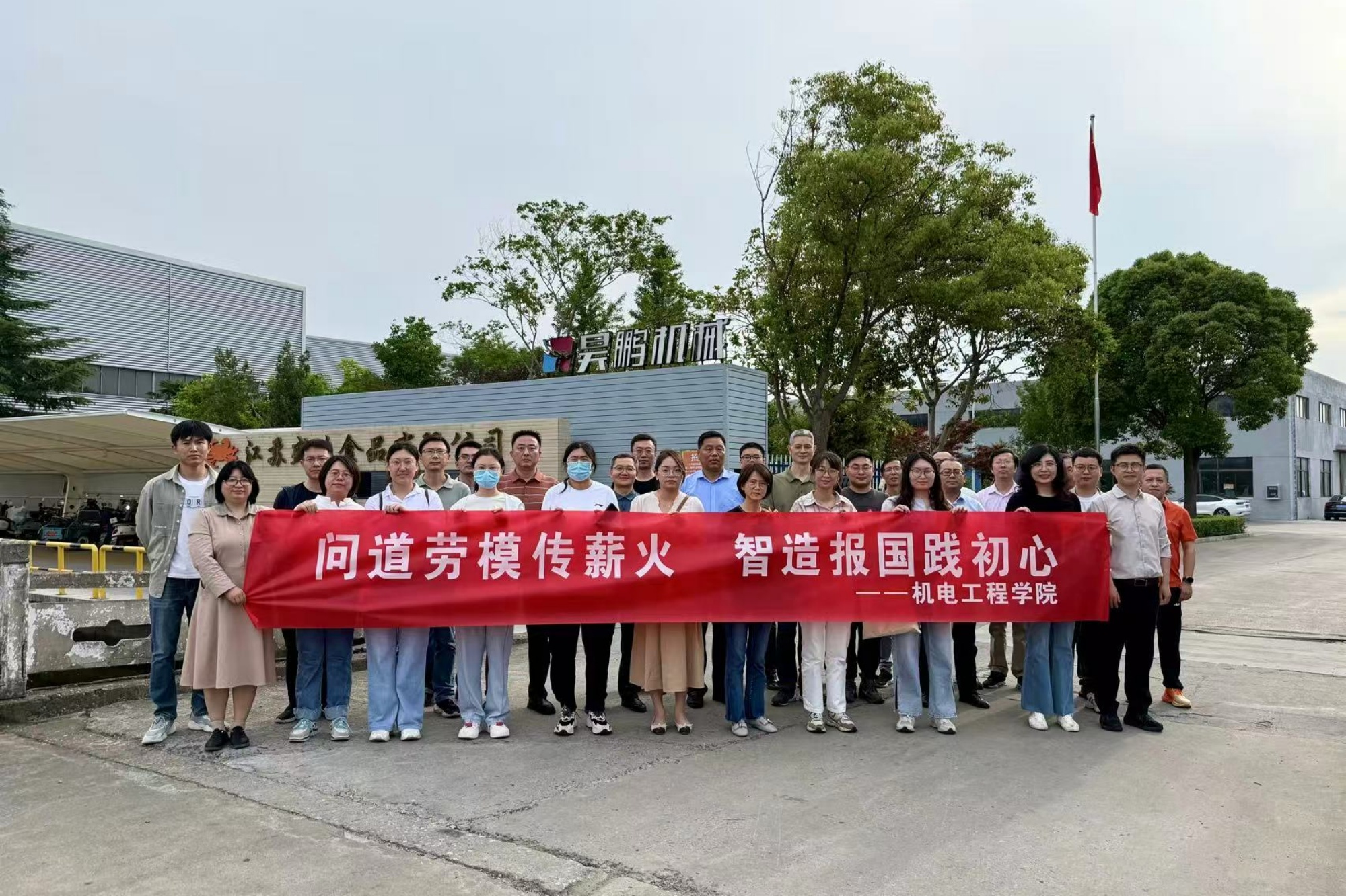 为深化新时代劳动教育内涵,践行高校社会责任,推动“劳模精神、劳动精神、工匠精神”融入高校育人体系,5月23日,机电工程学院关工委走进江苏昊鹏机械有限公司,开展“问道劳模传薪火·智造报国践初心”劳模工匠讲堂。本次讲堂邀请江苏省劳动模范、江苏昊鹏机械董事长丁宏山主讲。