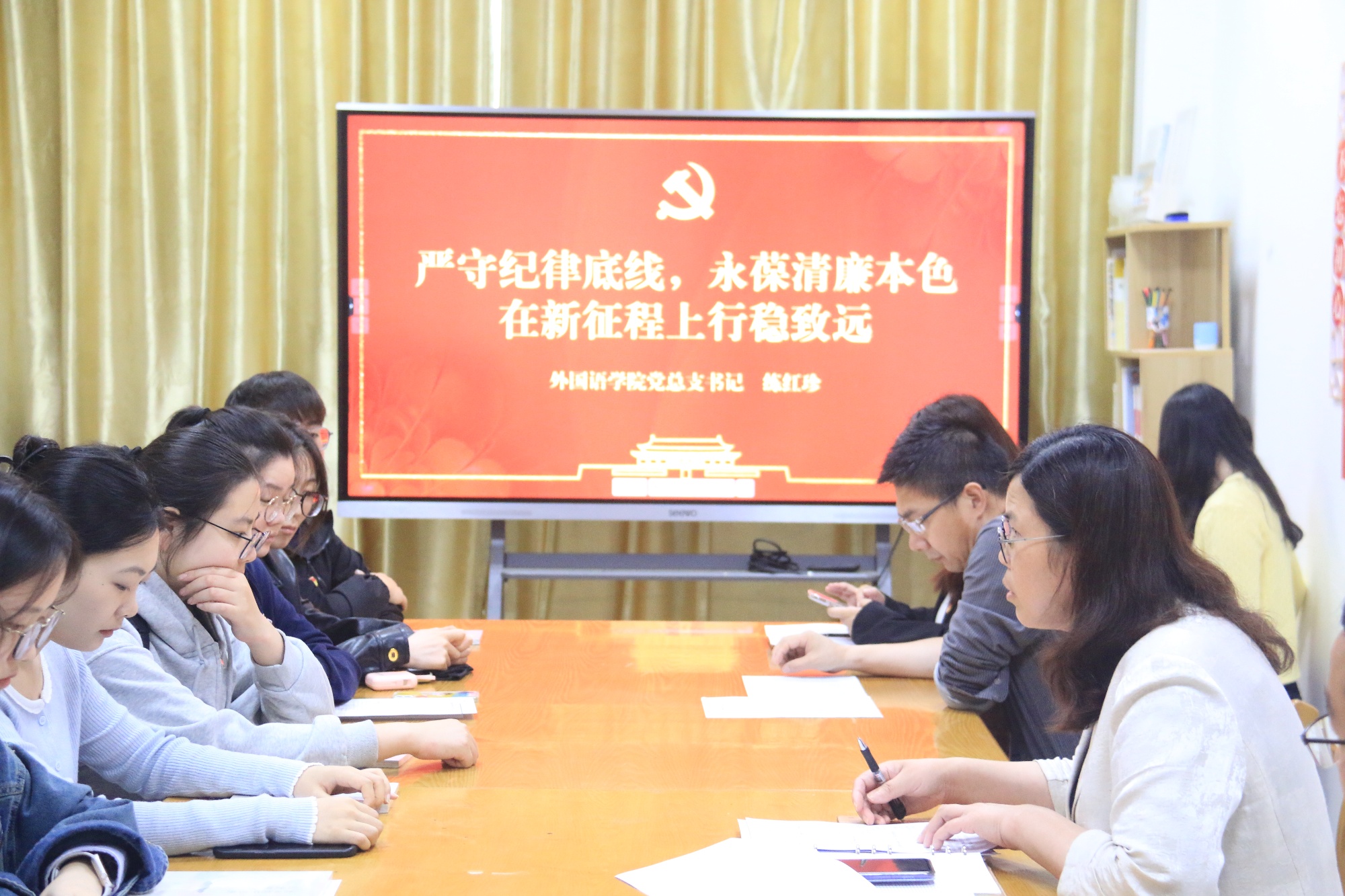 为扎实做好2025届高校毕业生党员廉洁教育工作,5月23日,外国语学院开展以“发扬党的优良作风,扣好毕业生‘第一粒扣子’”为主题的毕业生党员廉洁教育活动。