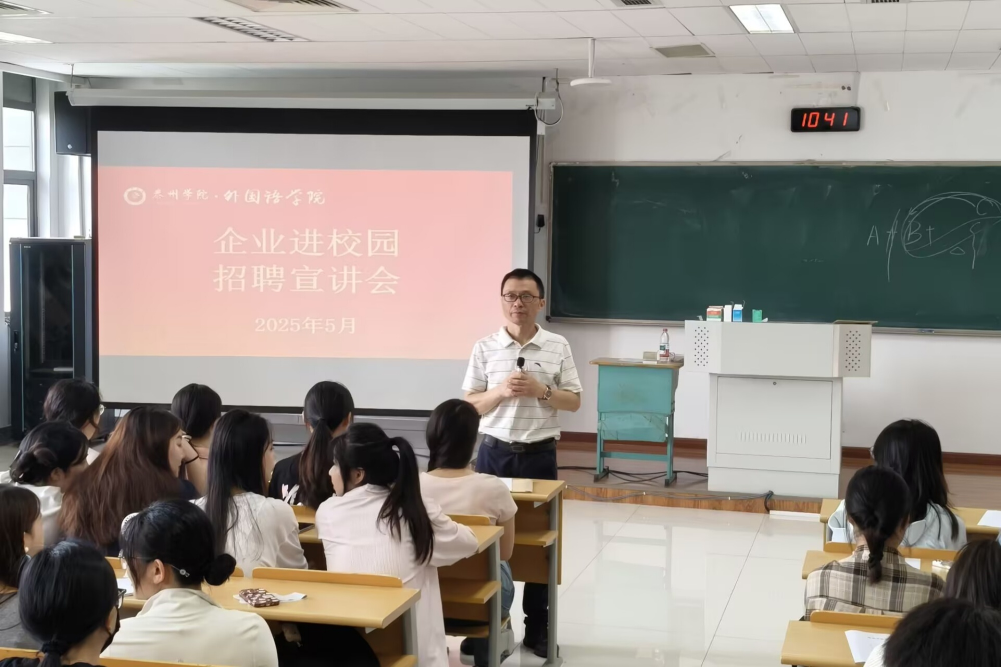 为扎实推进2025届毕业生高质量充分就业,抢抓毕业前就业的关键窗口期,5月27日上午,外国语学院在A2108教室举办企业进校园招聘宣讲会。上海能川自动控制技术有限公司、南京德昇自动化设备有限公司、泰州新东方学校三家企业代表到场进行招聘宣讲,学院就业辅导员及2021级毕业生代表共同参与活动。