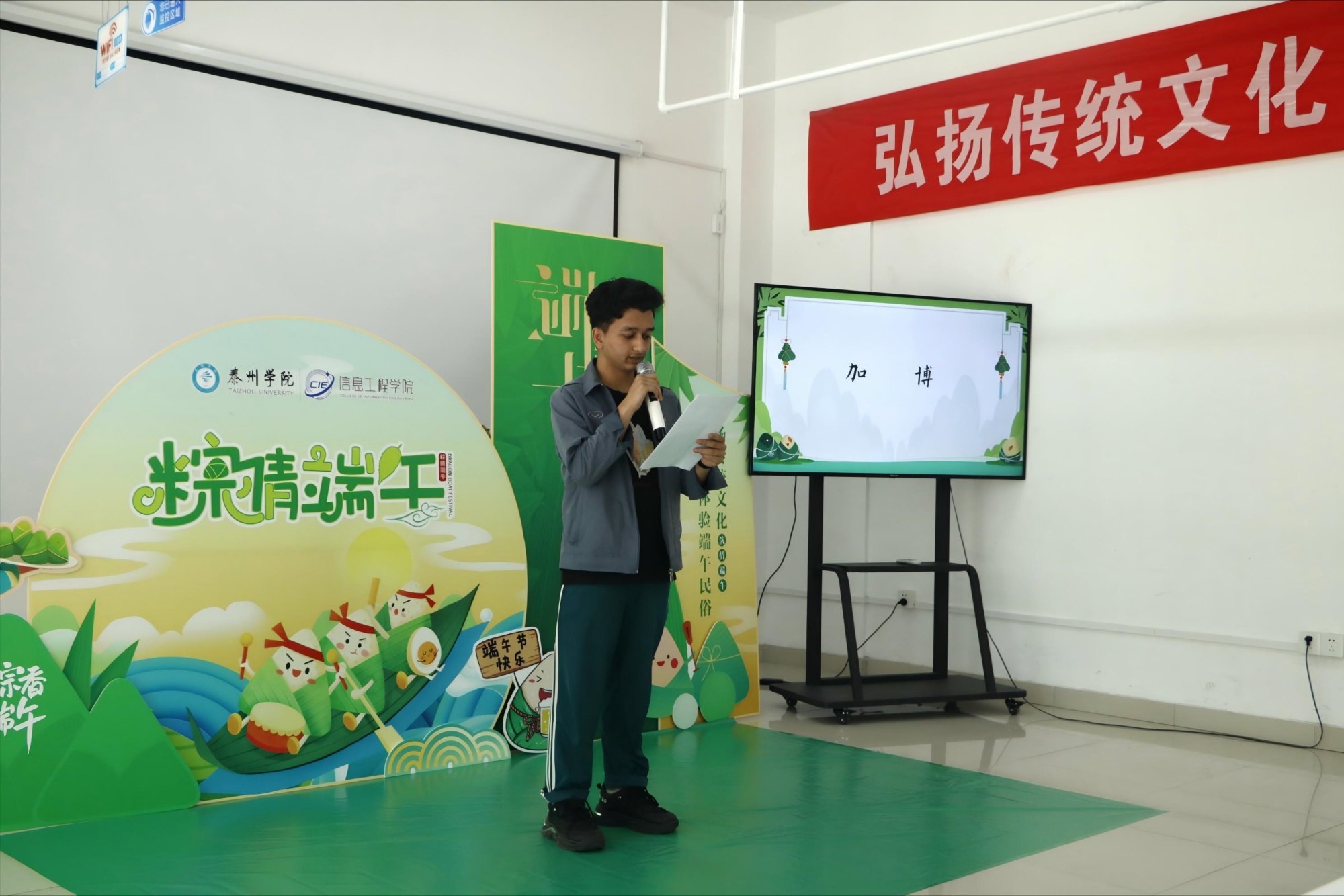 为传承中华优秀传统文化,促进中外文化交流互鉴,增进学生对中国传统节日的了解与体验,5月29日,由校学生工作处、学生发展支持中心主办,信息工程学院承办的“弘扬传统文化 体验端午民俗”主题活动在一站式学生服务社区举行。校学生工作处处长陈茂国、信息工程学院党总支书记杨智红出席活动,信息工程学院师生代表齐聚一堂,共同体验传统文化的独特魅力。