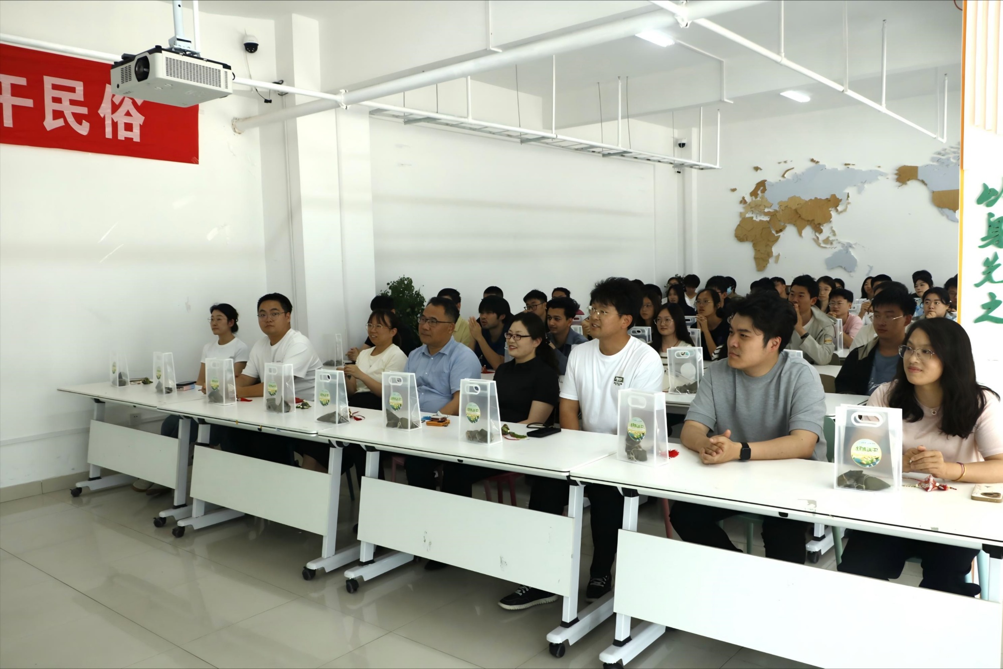 活动中,陈茂国、杨智红为学生代表们发粽子,向师生们致以节日祝福。在“粽香拾遗 端阳叙话”环节,学生代表刘远香与教师代表胡诗分别讲述侗族与壮族的端午习俗,丰富了师生对传统文化的认知。留学生加博分享道,“在这样一个充满文化魅力的节日,我看到了中国人对历史的尊重、对传统的传承,也让我慢慢喜欢上了中国的文化,理解了中国传统文化的魅力”。教师代表刘帅博士则寄望学生,用心领悟端午节文化内涵,以实际行动践行文化传承。