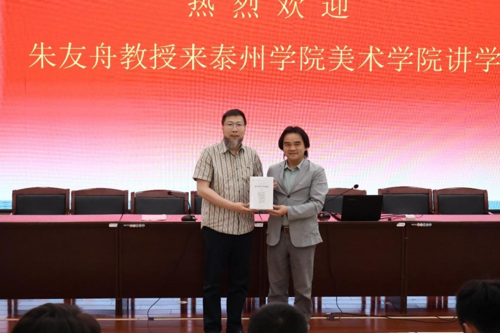 讲座开始前,朱友舟教授向美术学院捐赠著作仪式在二适楼举行。何鑫代表学院接受捐赠,并向朱友舟教授颁发《收藏证书》致谢。