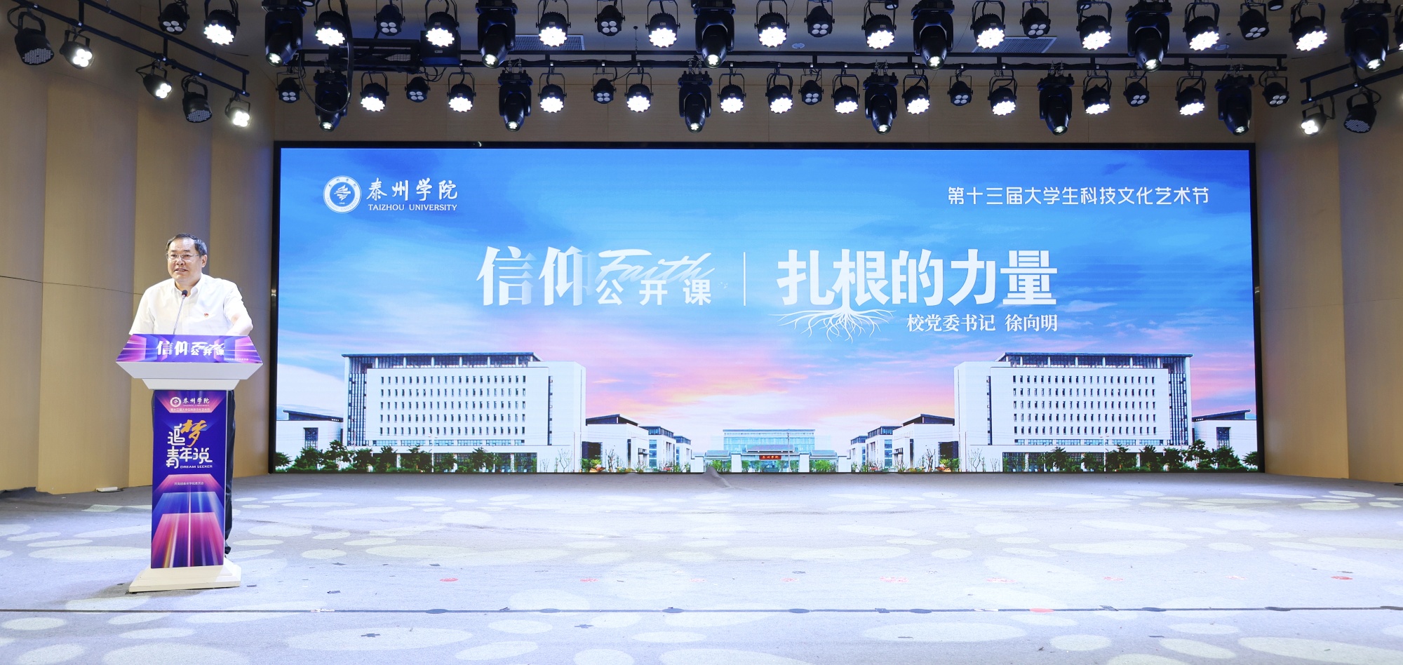校党委书记徐向明以“扎根的力量”为主题讲授信仰公开课,从历史、现实、未来三个维度阐释泰院人扎根力量的积聚路径。他指出,泰院84年办学史中,“为国家和民族之需办学”的理念指明了扎根方向,一代代泰院人取得的跨越式发展成果铸牢了信仰根基。立足现实,他强调双向延伸“根系”:以硕士点申建、高质量迎考等筑牢“主根”,提升硬实力;整合校内外资源织密“须根”,增强软实力。面向未来,他提出培植“根芽”应对时代挑战,通过“根”的稳固与“芽”的突破孕育“第二曲线”,为2035、2050远景积蓄动能。“历史根脉是信仰根基,现实根系是行动路径,未来根芽是创新动能。”徐向明号召师生以史为基、以实为径、以新为向,凝聚扎根力量共谱泰院发展新篇。