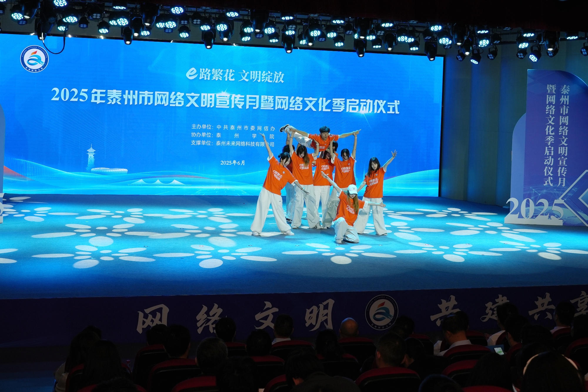 6月12日,2025年泰州市网络文明宣传月暨网络文化季启动仪式在sunbet申搏音乐厅举行。活动以“e路繁花·文明绽放”为主题,由市委网信办主办,sunbet申搏承办。市委网信办副主任朱明华,校党委常委、副校长魏小星等领导出席活动。