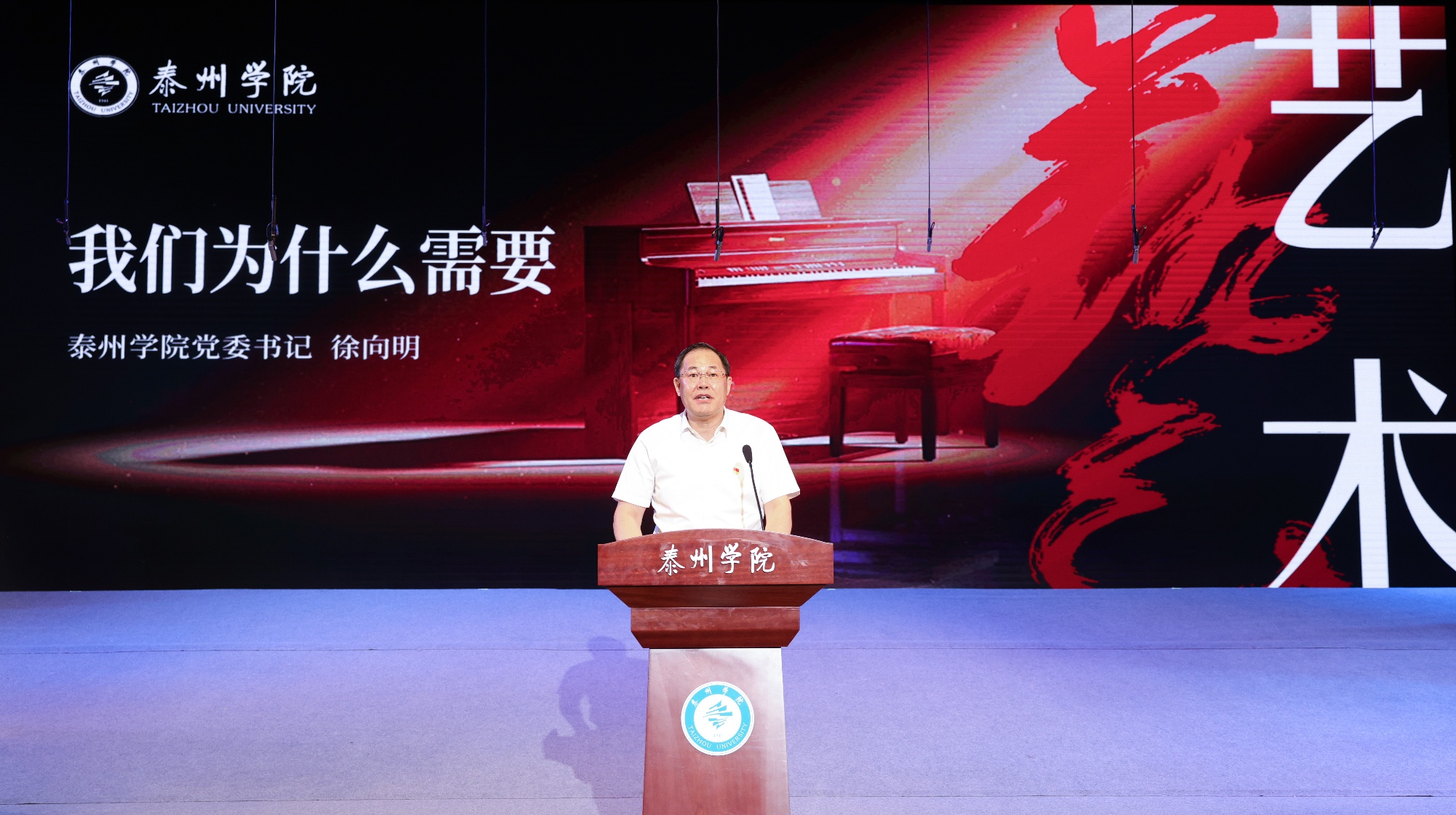 音乐会开始前,校党委书记徐向明以《我们为什么需要艺术》为题,从灵魂“抚慰者”与精神“礼赞者”的双重维度,深刻阐释了艺术在新时代的重要意义。“艺术是泰院84年未断的基因传承,是熔铸个人与集体理想的信仰熔炉。”他的论述将红色艺术经典与高校思政教育紧密结合,引发全场师生共鸣。