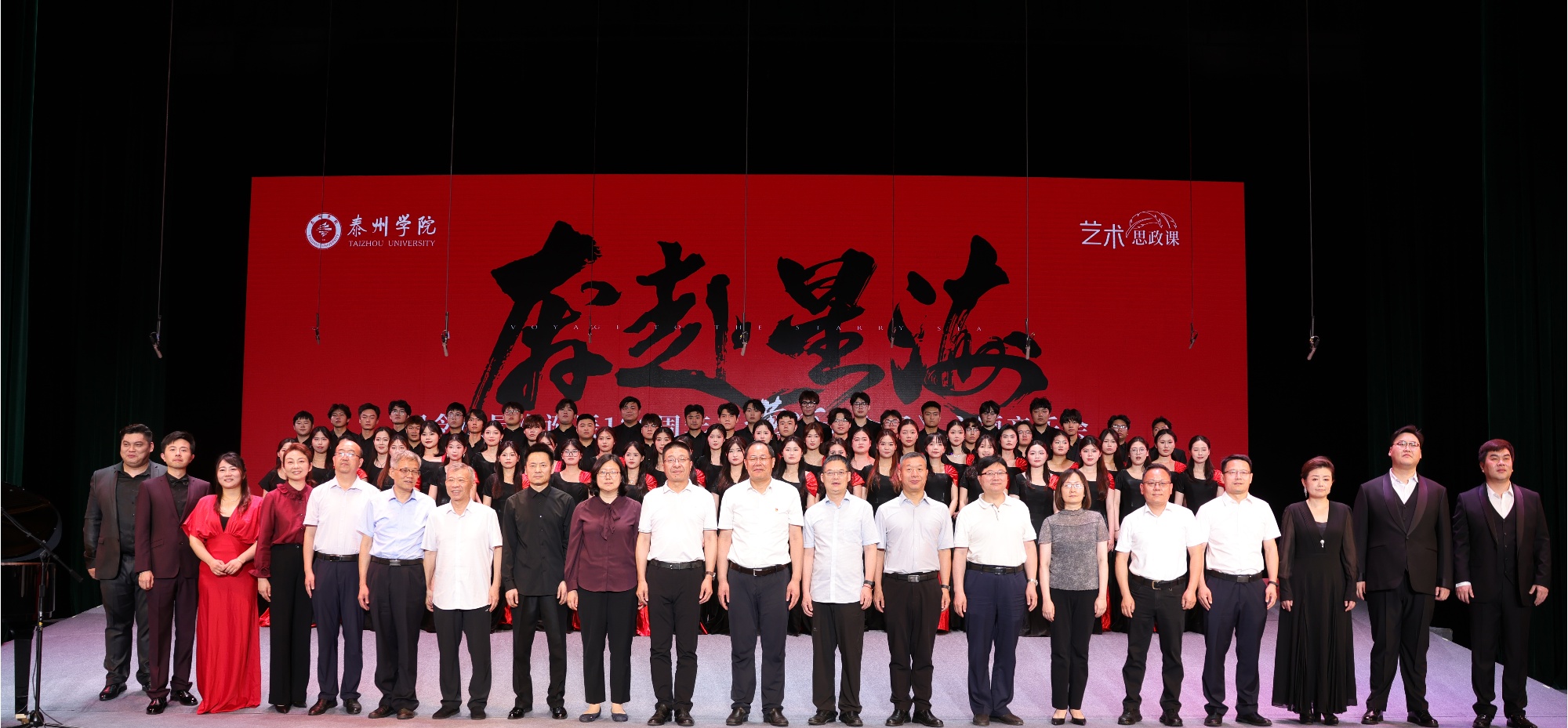 6月18日,由校党委宣传部主办、音乐学院承办的sunbet申搏官方网站“奔赴星海”——纪念冼星海诞辰120周年《黄河大合唱》专场音乐会在大学生活动中心上演。泰州市委宣传部、泰州市文化广电和旅游局、泰州市教育局、泰州市文学艺术界联合会相关负责同志,全体在泰校领导与近千名师生代表共同观看演出,在艺术与思政的交融中接受精神洗礼。