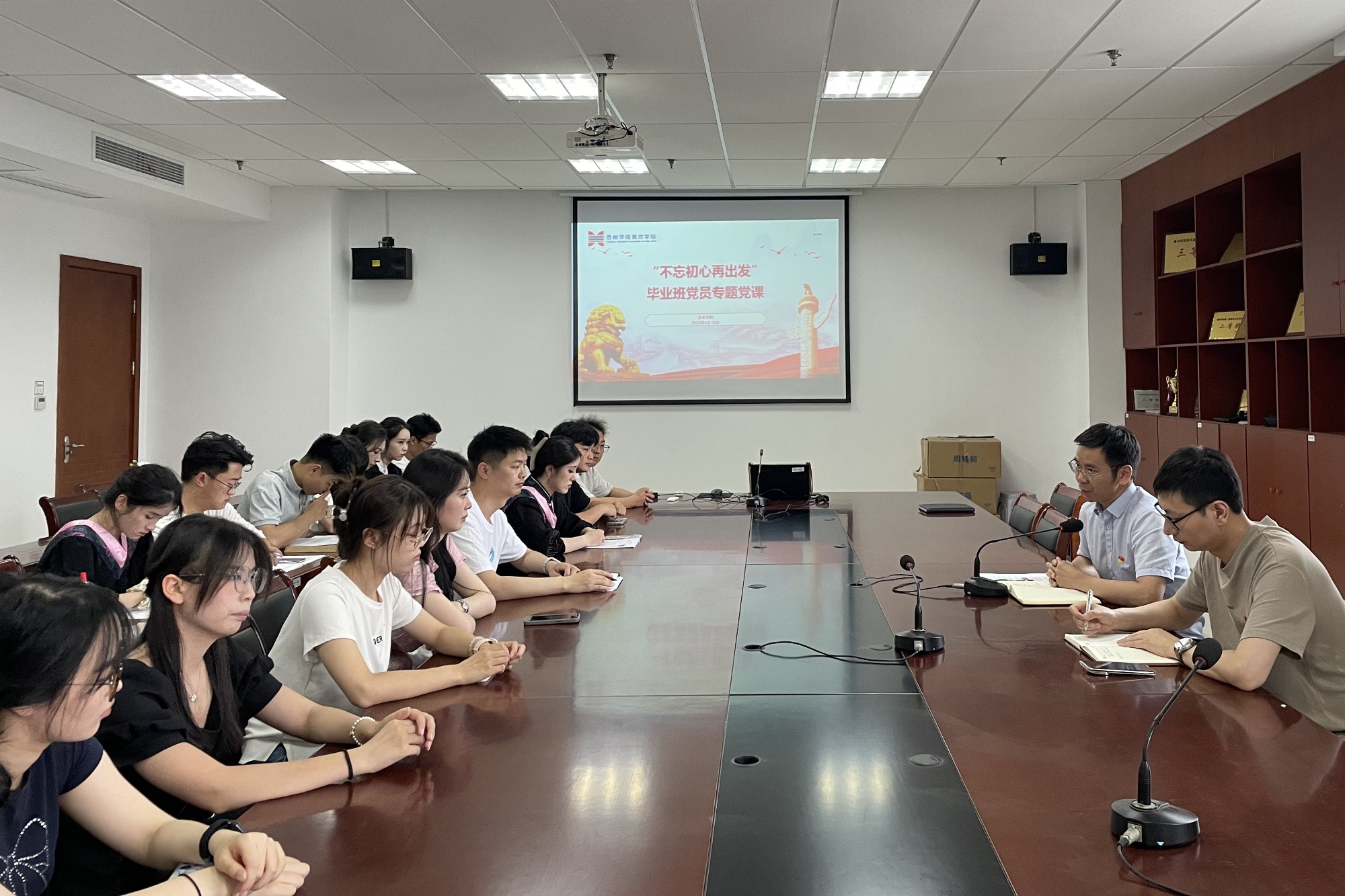 为筑牢毕业生党员理想信念根基,强化责任担当意识,激励其在人生新征程中始终坚守政治本色,6月18日,美术学院党总支书记吴新林为全体毕业生党员讲授专题党课。活动由学工党支部书记鞠洋洋主持,通过历史回溯、使命传递与誓词重温,为毕业生党员上离校前的“最后一课” 。
