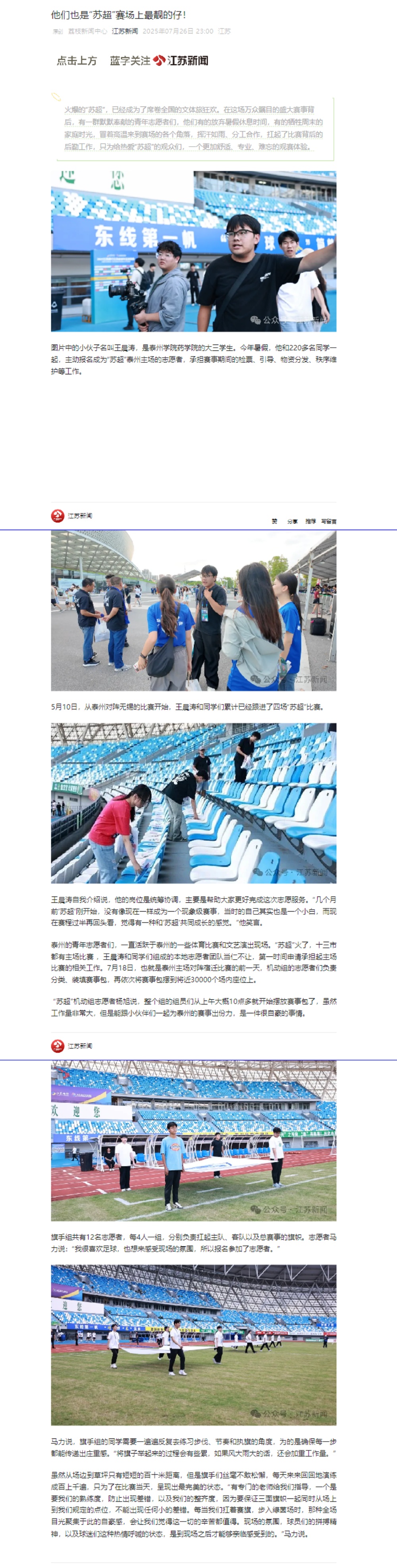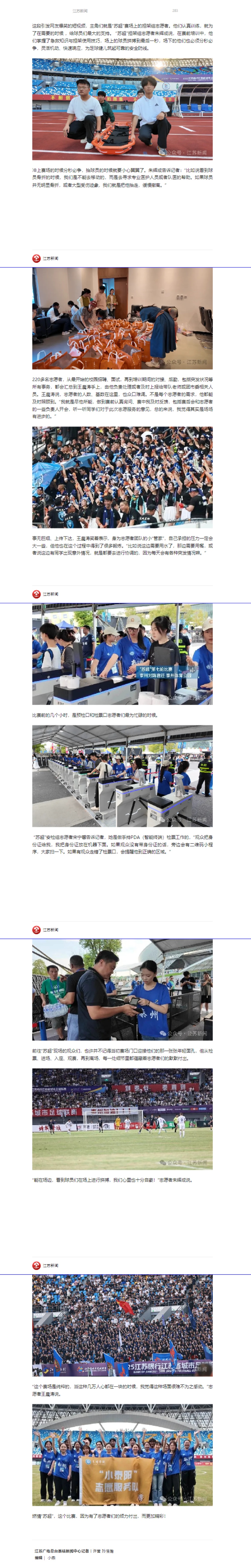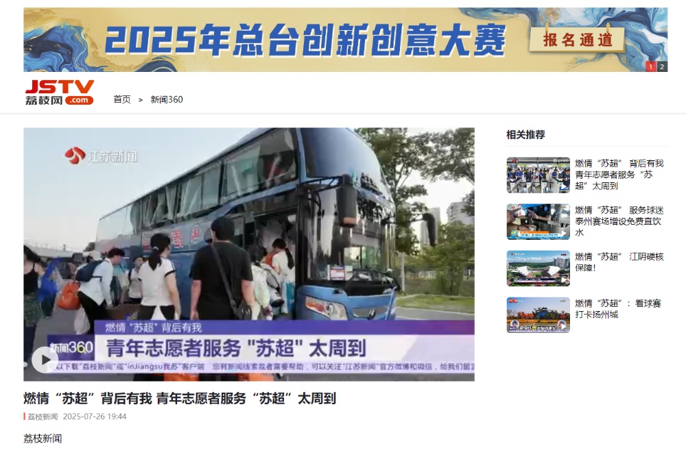 《江苏新闻》《荔枝网》2025年7月26日报道“苏超”背后的sunbet申搏青年志愿者