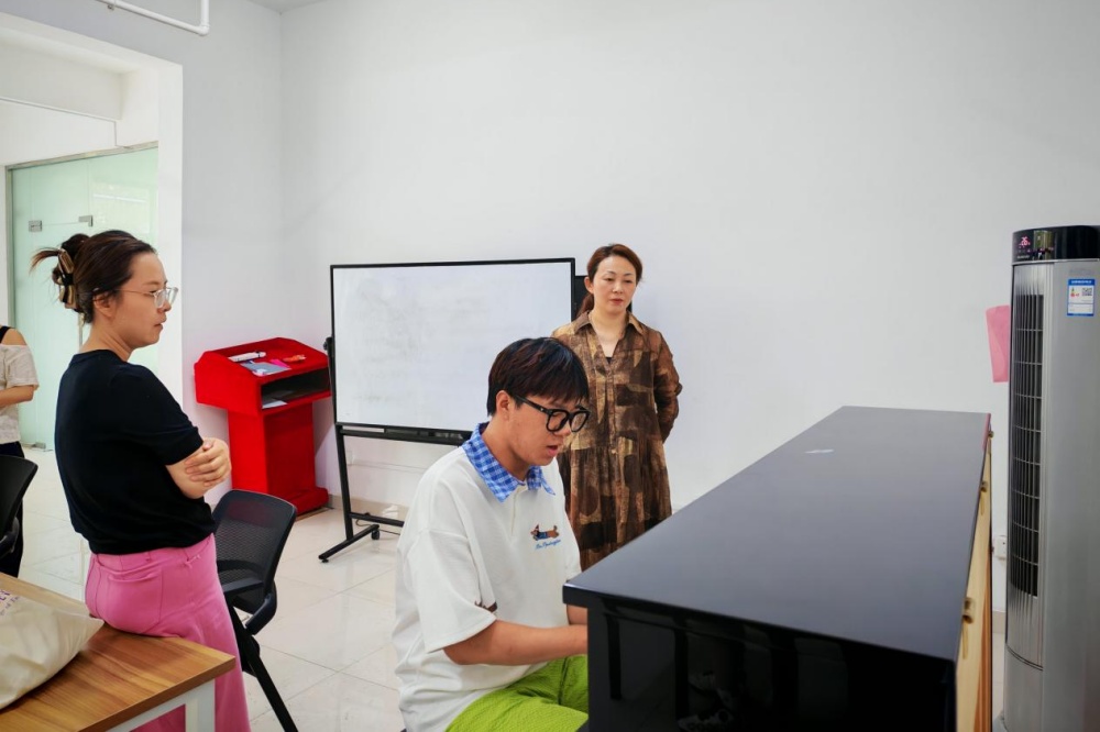座谈会后,学院一行前往师范生基本功大赛集训教室,实地了解备战情况。他们认真观摩学生训练,与指导老师和备赛学生深入交流,详细了解训练计划与备赛进展,勉励大家坚定信心、刻苦训练、精益求精,充分利用暑期宝贵时间打磨专业技能,力争在大赛中充分展现音乐学院学子的卓越风采。