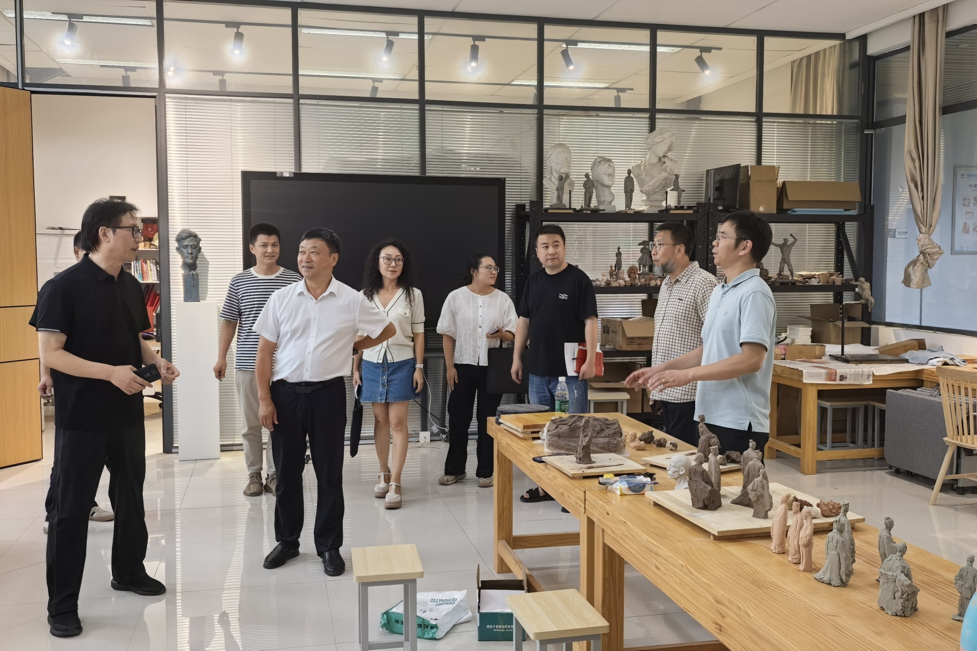 会后,蔡伟一行还实地走访了美术学院富媒体工作室、陶艺工作室、雕塑实验室等教学实践场所,直观了解学院在艺术创作、实践教学等方面的硬件设施与教学成果,对学院浓厚的艺术氛围和鲜明的办学特色给予高度评价。