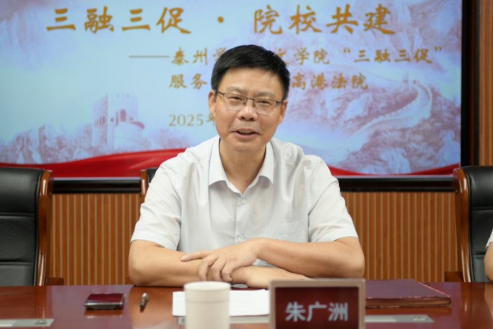 为深化“三融三促”战略部署,推进校院共建,8月6日下午,校党委常委、副校长卜慧芬赴高港区人民法院出席产学研合作调研会。高港区人民法院党组书记、院长朱广洲,立案庭、政治处等部门同志,人文学院相关负责人参加活动。