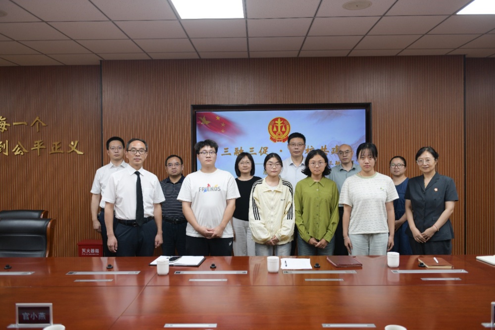 卜慧芬一行还看望了在高港区人民法院参与岗位实践的杨东升博士,参加了高港法院举办的“院校共育 法润人文”暑期实习结业仪式,共同见证师生们的成长与收获。