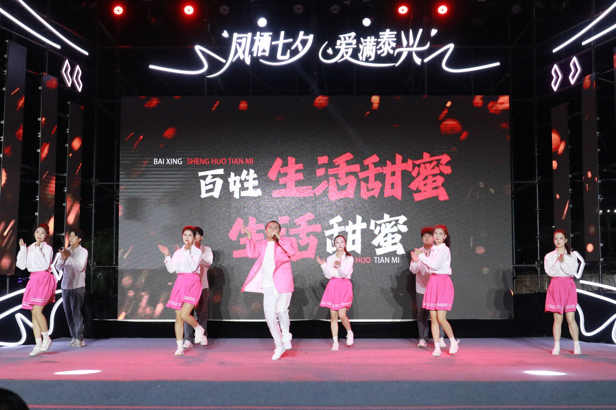近日,音乐学院深入推进“三融三促”校城共兴计划,与泰兴市委宣传部深度合作,联合泰兴高新区、泰兴市融媒体中心共同策划的“凤栖七夕 爱满泰兴”2025年“我们的节日·七夕”暨泰兴“青年引力场”爱情主题活动,于8月29日晚成功举行。学院近30名师生参与活动,原创舞蹈、音乐说唱作品凭借鲜明的主题与精湛的演绎,赢得现场观众阵阵热烈喝彩。