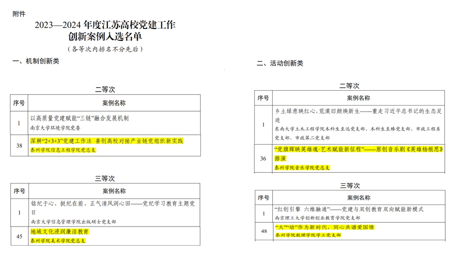 本次案例共评选出2023—2024年度江苏高校党建工作创新案例机制创新类196项、活动创新类199项。