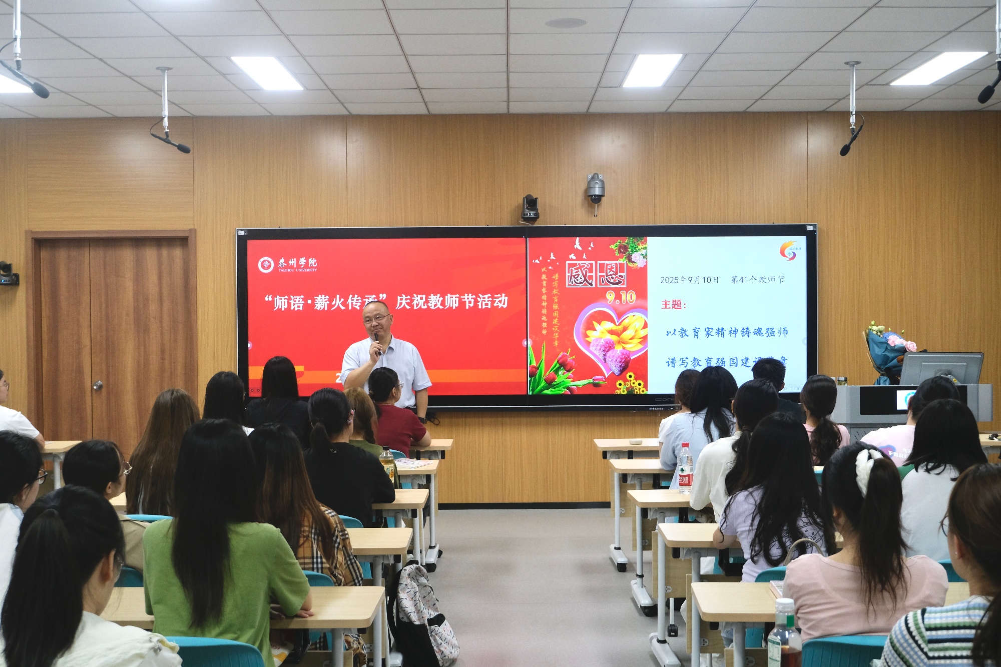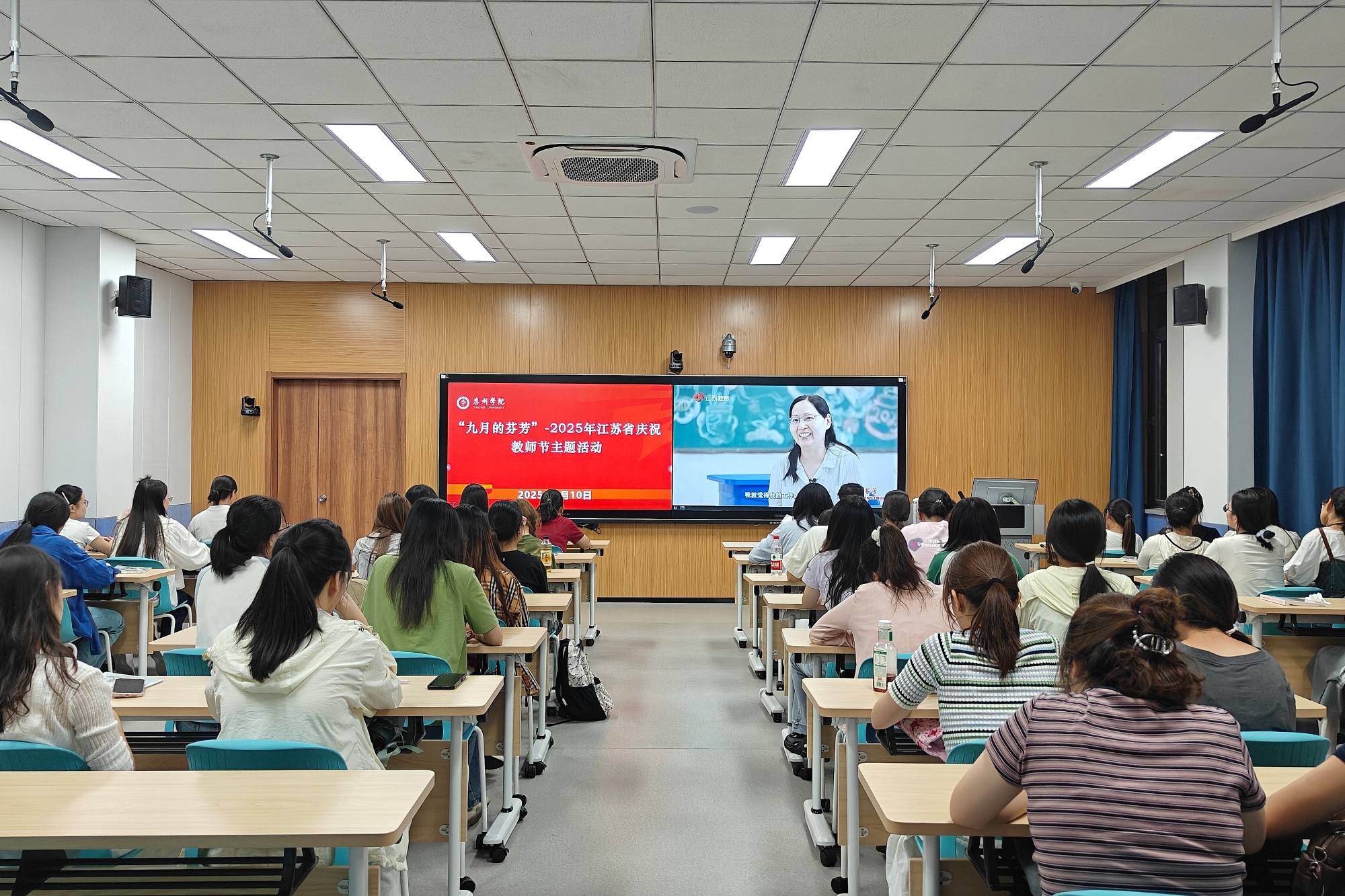 讲座结束后,全体师生共同观看江苏省广播电视总台教育频道“九月的芬芳——2025年江苏省庆祝教师节主题活动”直播盛况。
