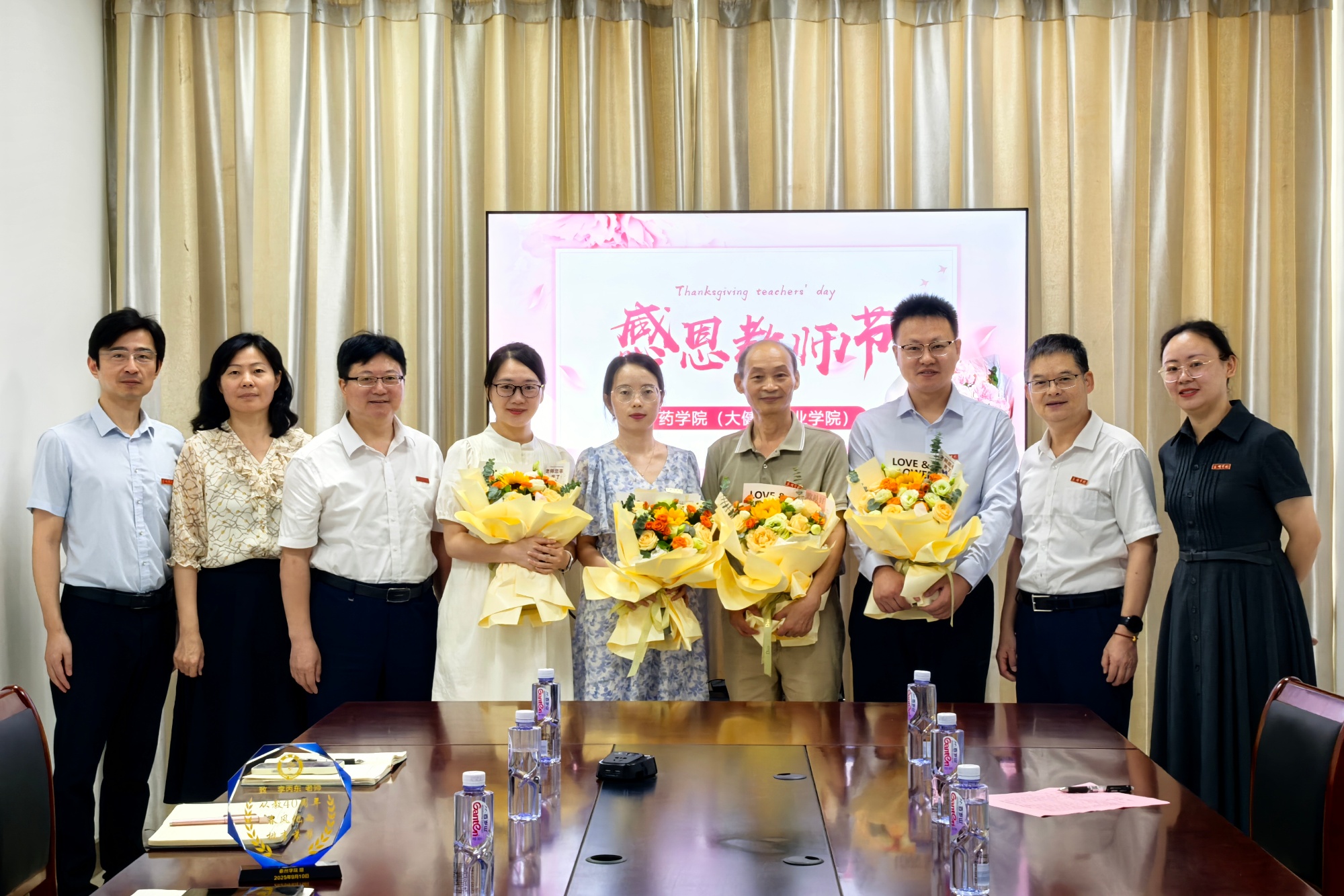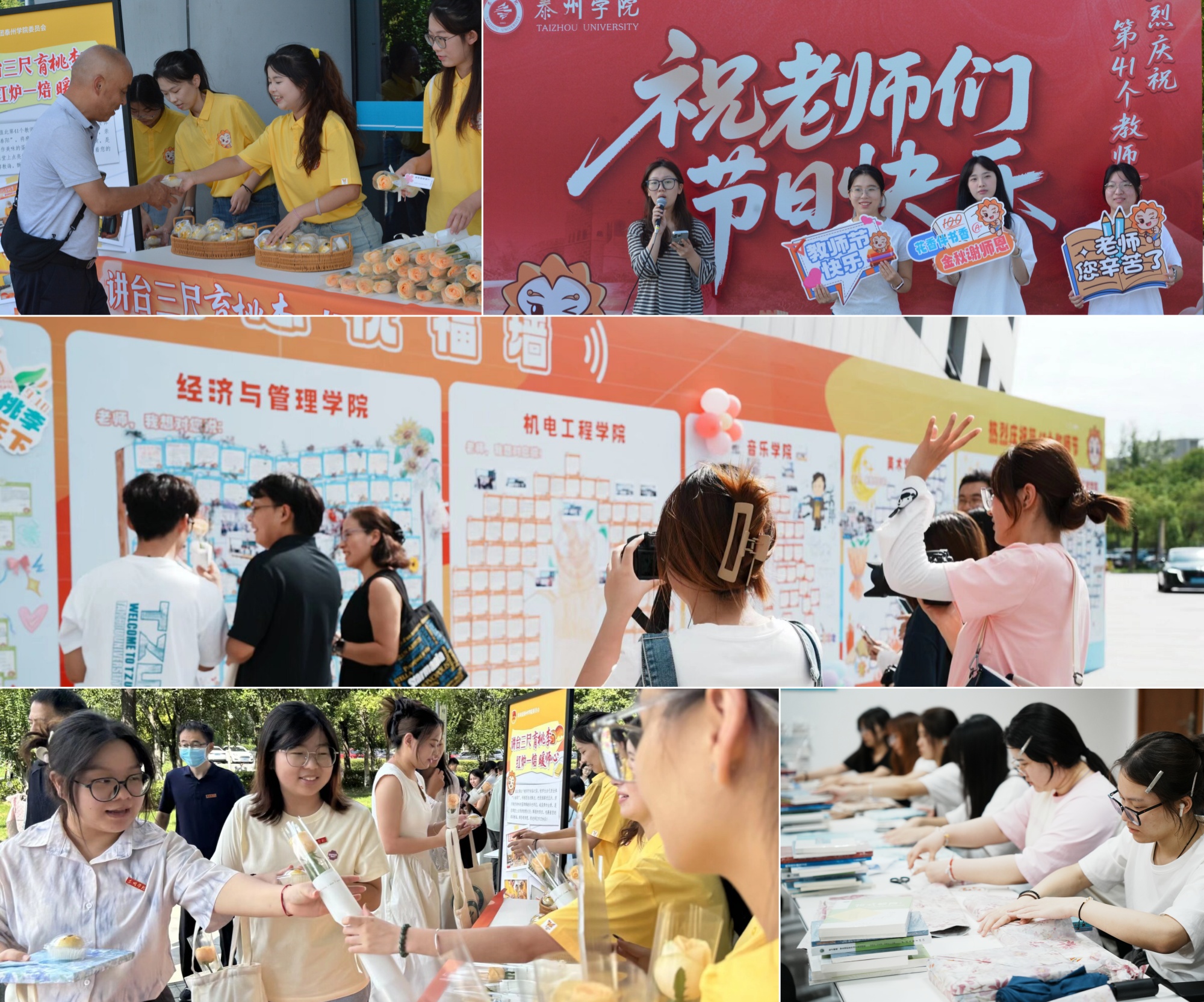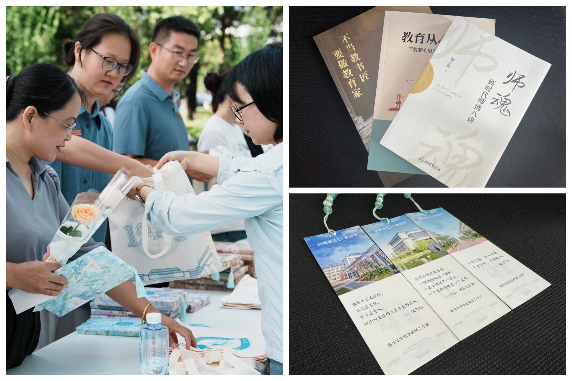 此外,学校还在教师节当天开展了“礼敬师道”系列暖心活动,为每位教师准备了特别的“教师节礼包”,赠送“教育家精神”相关书籍和书签。校学生会紧扣“感谢师恩”主题,将对老师的感恩之情融入手工制品,赠送寓意“团圆美满”的零食;用鲜花和歌声向老师表达敬意与感恩;用镜头定格师生合影的温馨瞬间,留存美好时光,每一项活动都表达着对老师的崇高敬意与感恩之情。