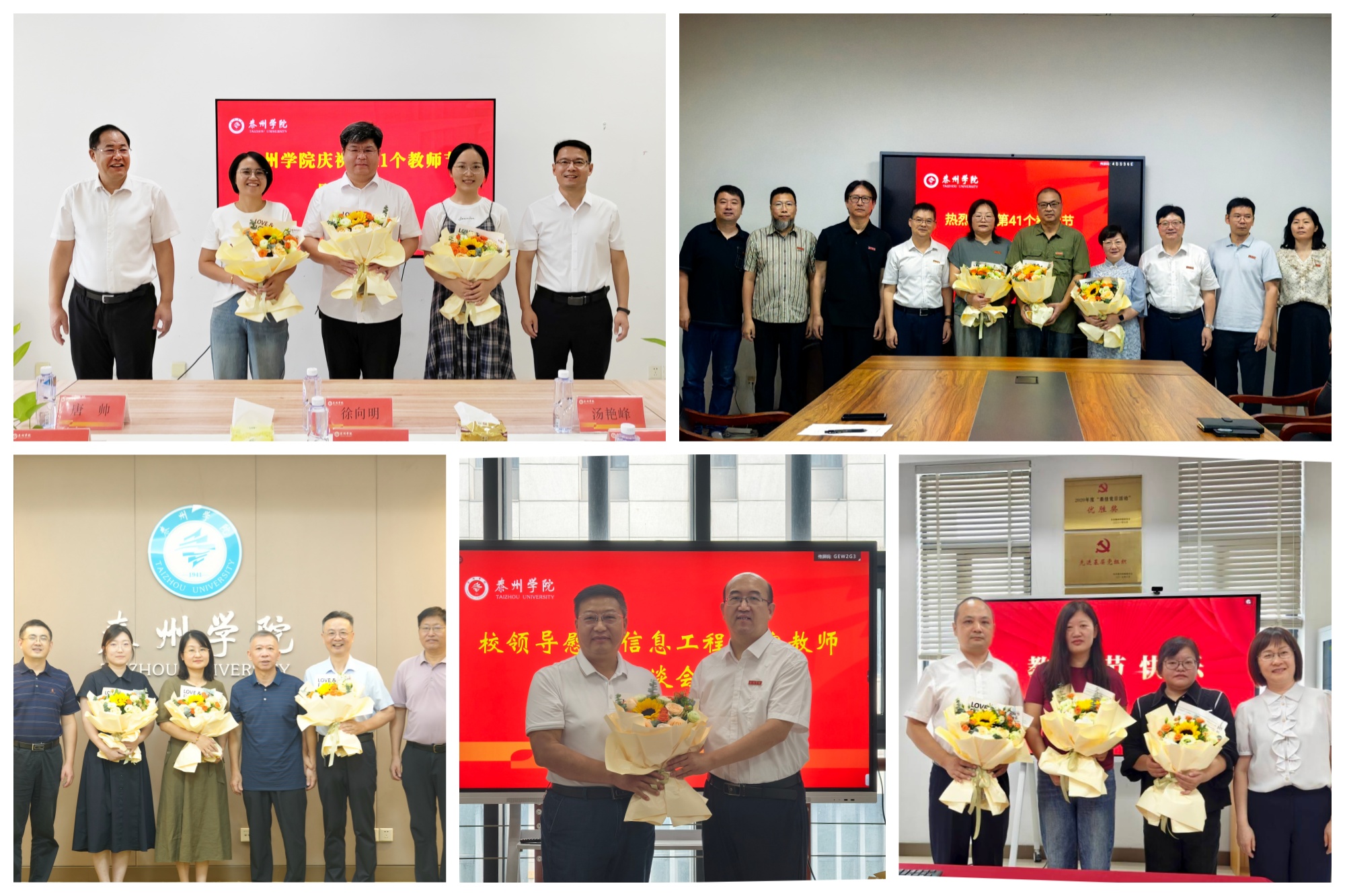 9月10日上午,党委书记徐向明,校党委副书记、校长冯锋代表学校看望了从教四十年的老教师,为他们送上精心准备的纪念品与鲜花,对他们数十年如一日的坚守与奉献表示感谢。全体在泰校领导深入二级学院(部)慰问教师,致以节日的祝福。校领导详细了解教师的学习、工作和生活情况,勉励老师们以教育家精神为引领,勇挑重担,持续追求卓越。