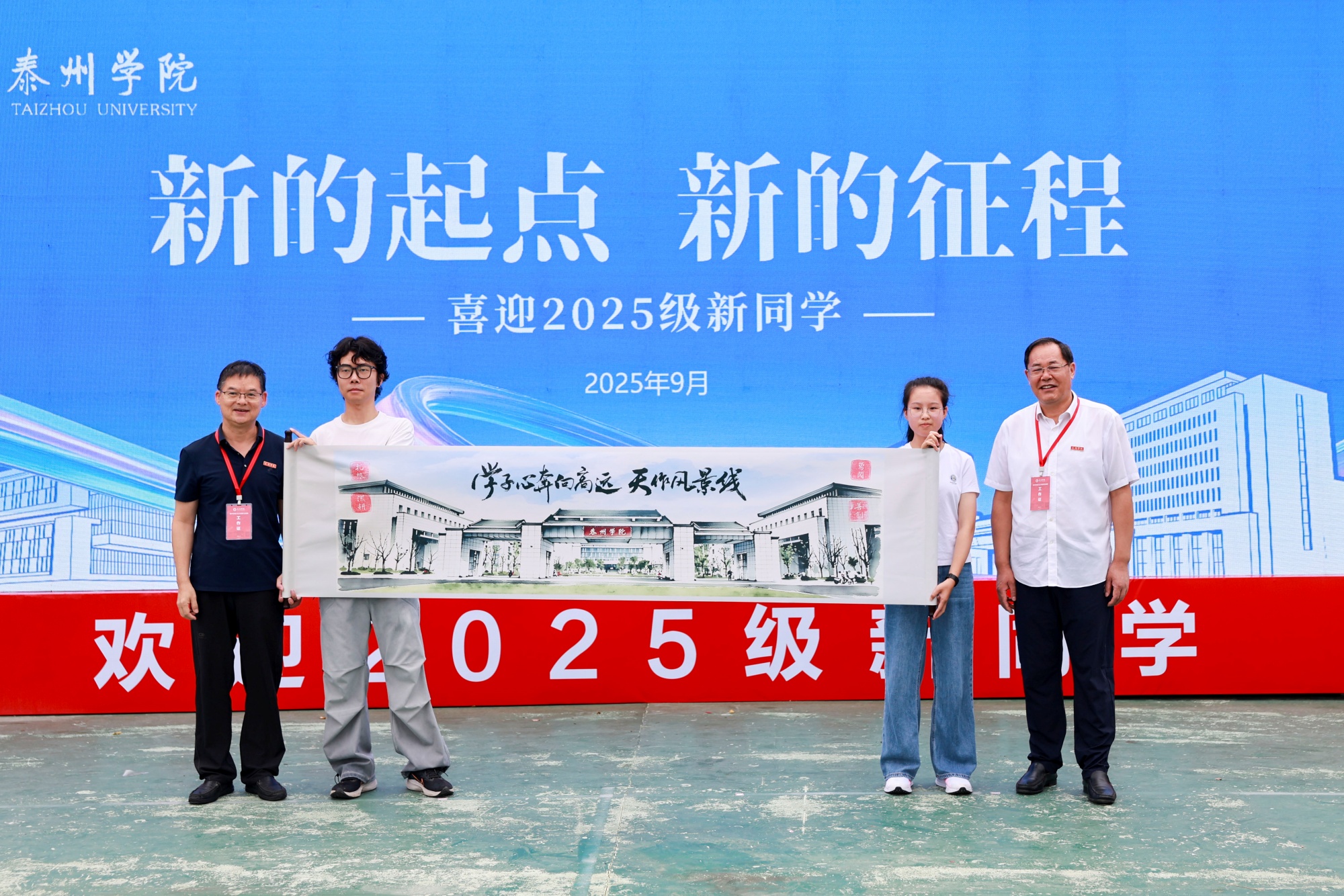 校党委书记徐向明,校党委副书记、校长冯锋与新生代表李想、钱鹏程一起共同执起刻有泰院精神的四方印,在“泰院画卷”上盖上“扎根”“深耕”“勇闯”“善创”的成长印记,勉励同学们弘扬泰院精神,做彰显“光明、多彩、温暖、活力”阳光特质的阳光学子。这不仅是一份独特的入学礼,更是一场关于未来与成长的共同期许。徐向明、冯锋特别为同分考上sunbet申搏的双胞胎姐妹张欣欣、张欣梦同学送上鲜花和祝福,鼓励她们在校期间彼此支持,共同成长。