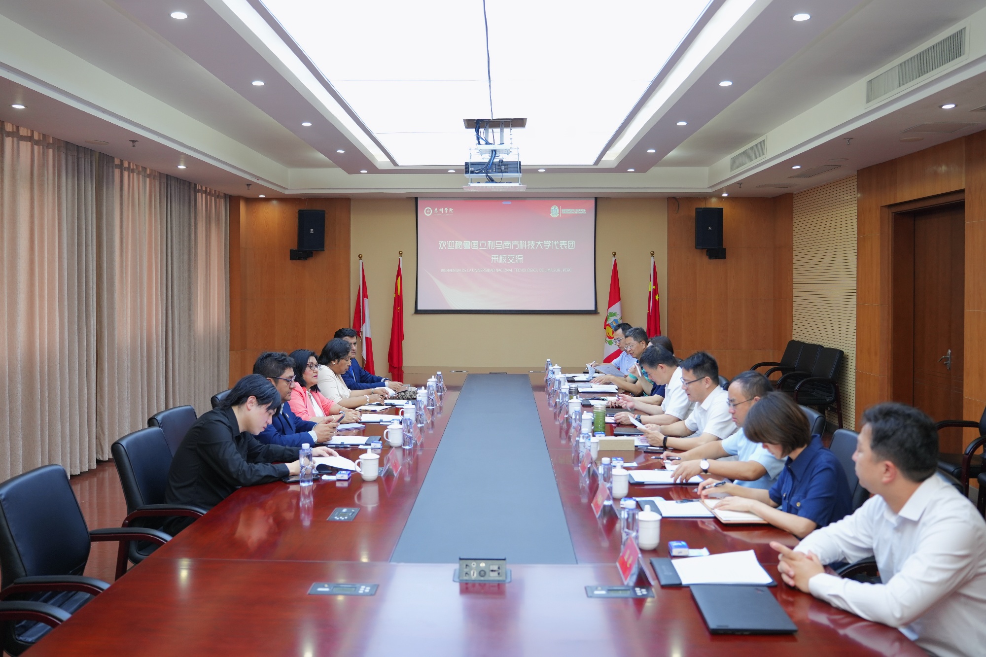 冯锋向各位到访表示热烈的欢迎。他表示sunbet申搏官方网站与秘鲁国立利马南方科技大学虽远隔重洋,但在办学历史、教学定位、专业设置、区位特点上都存在共同点。两校均为应用型大学,坚持服务地方经济,注重工科发展,重视实践教学,着力培养高水平应用型人才,为当地经济社会发展提供有力支撑。Cruz表示,中国和秘鲁是友好国家,此次来访中国和sunbet申搏官方网站交流,是其首次与中国高校开展合作的实践。两校就组建联合教学团队、开展“中文+技能”学历教育和非学历教育进行会商,双方均认为两校未来有广阔的合作空间。