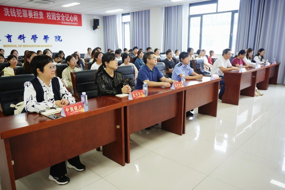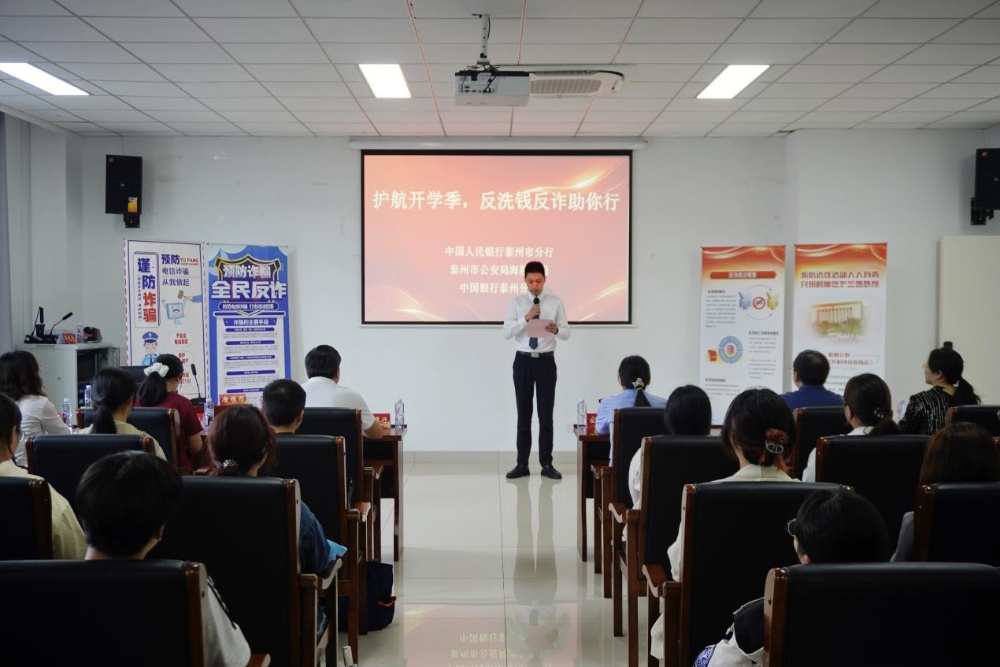 为切实提升大学生对洗钱犯罪和电信网络诈骗的识别与防范能力,9月25日上午,中国银行泰州分行联合中国人民银行泰州分行、泰州市公安局海陵分局走进教育科学学院,面向2025级新生开展反洗钱与反诈专题宣传。教育科学学院党总支书记仲宁,副书记、副院长孙晓敏参与了本次活动。