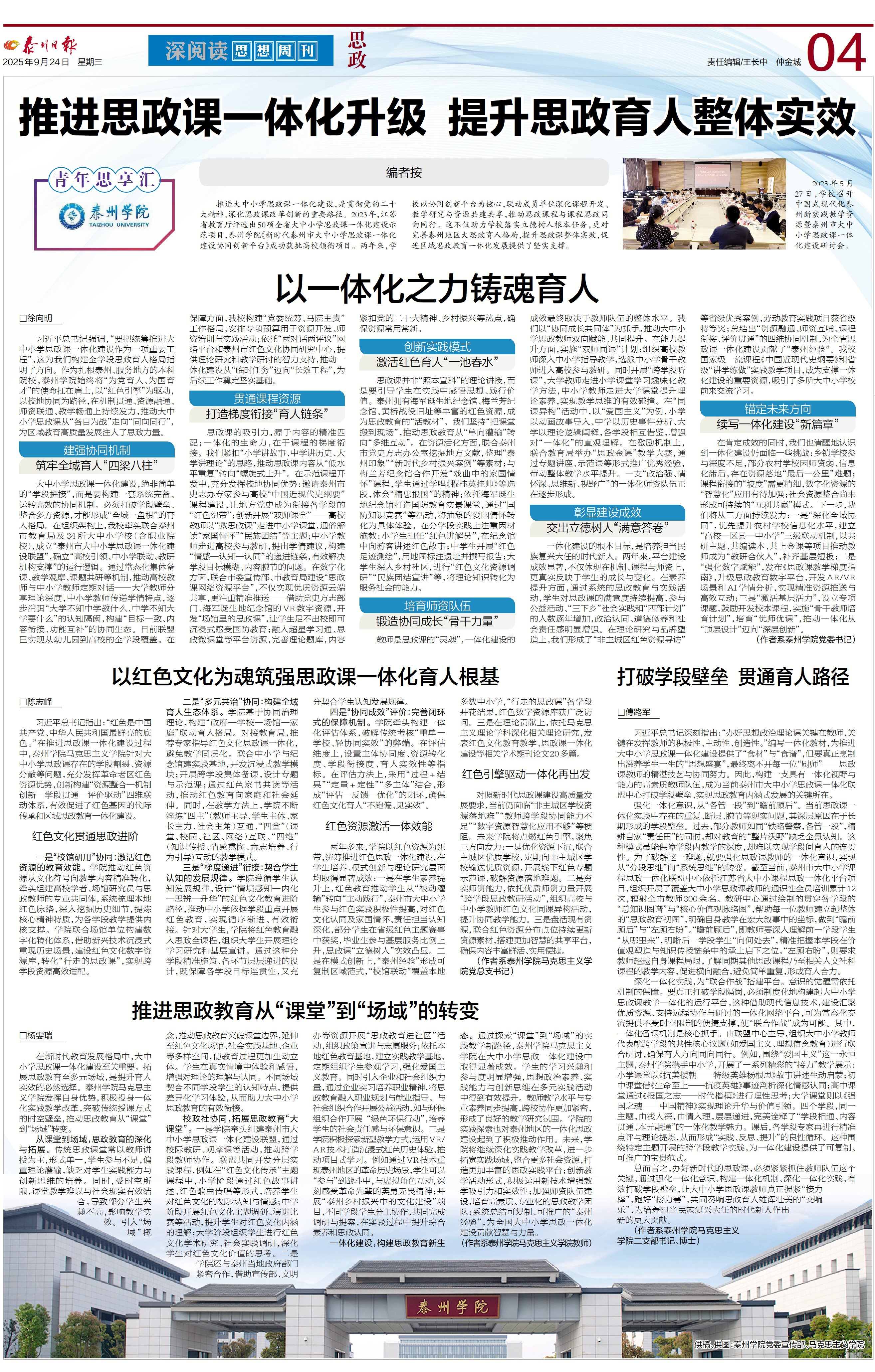 《以一体化之力铸魂育人》:https://sz.tznews.cn/tzrb/pc/col/202509/24/content_305338.html