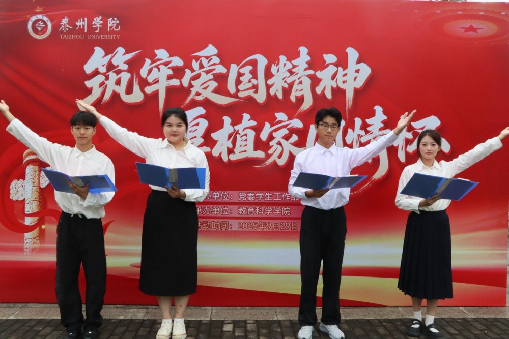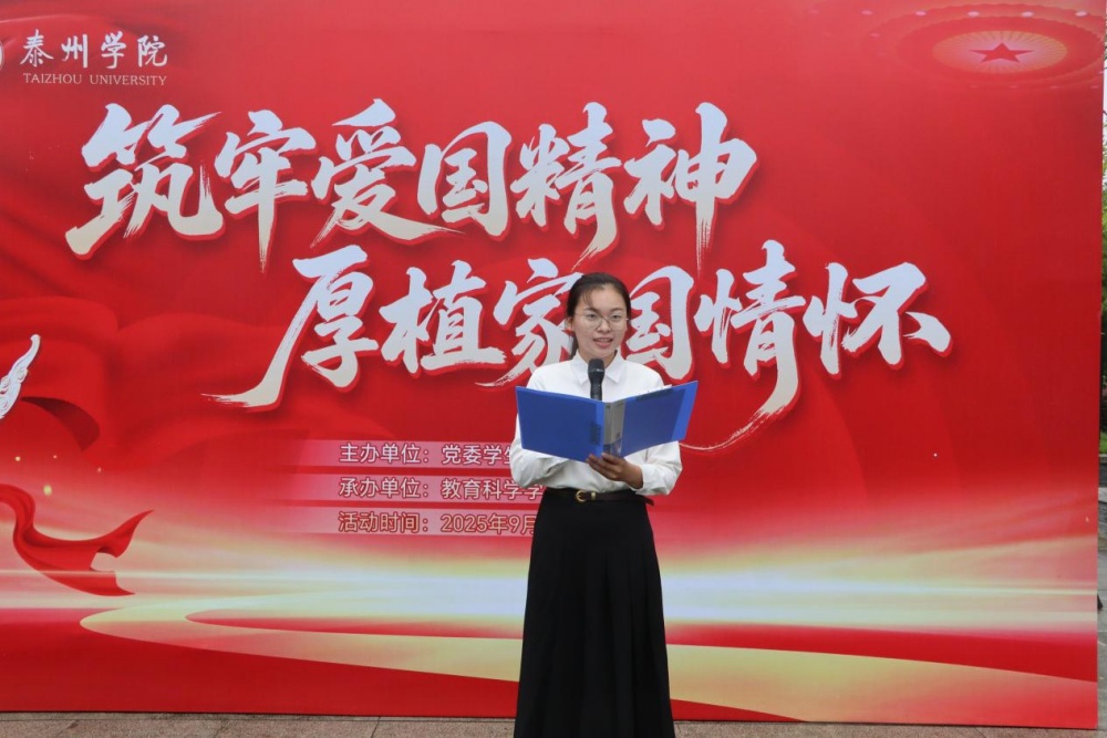 仪式上,学生代表朗诵《在中国的大地上报道》,以铿锵之声展现了中华儿女在时代浪潮中锐意进取、砥砺创新的精神风采。2024级小学教育(语文)2班李瑾如同学在发言中呼吁大家将个人理想与时代召唤同频共振,用青春的汗水践行作为一名师范生的责任与爱国承诺。