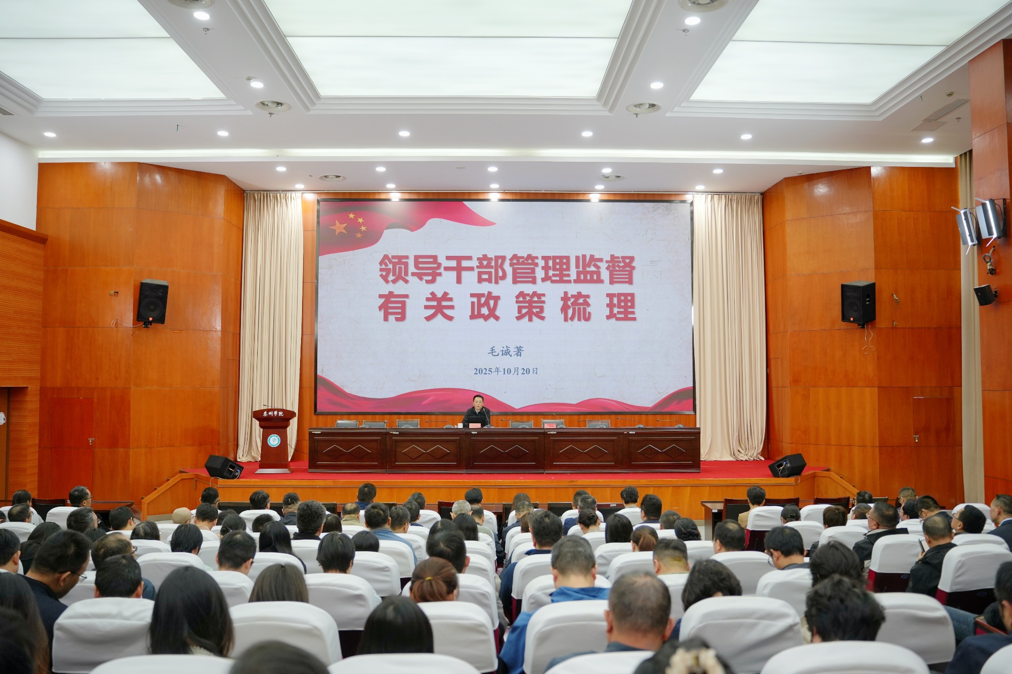 培训会上,毛诚著对高校领导干部管理监督有关政策进行了全面梳理,重点解读了领导干部兼职、个人有关事项报告、因私出国(境)管理等政策要求,结合典型案例深入剖析了政策执行中的常见问题与风险点,既有政策高度,又紧密结合高校实际,具有很强的指导性和针对性。