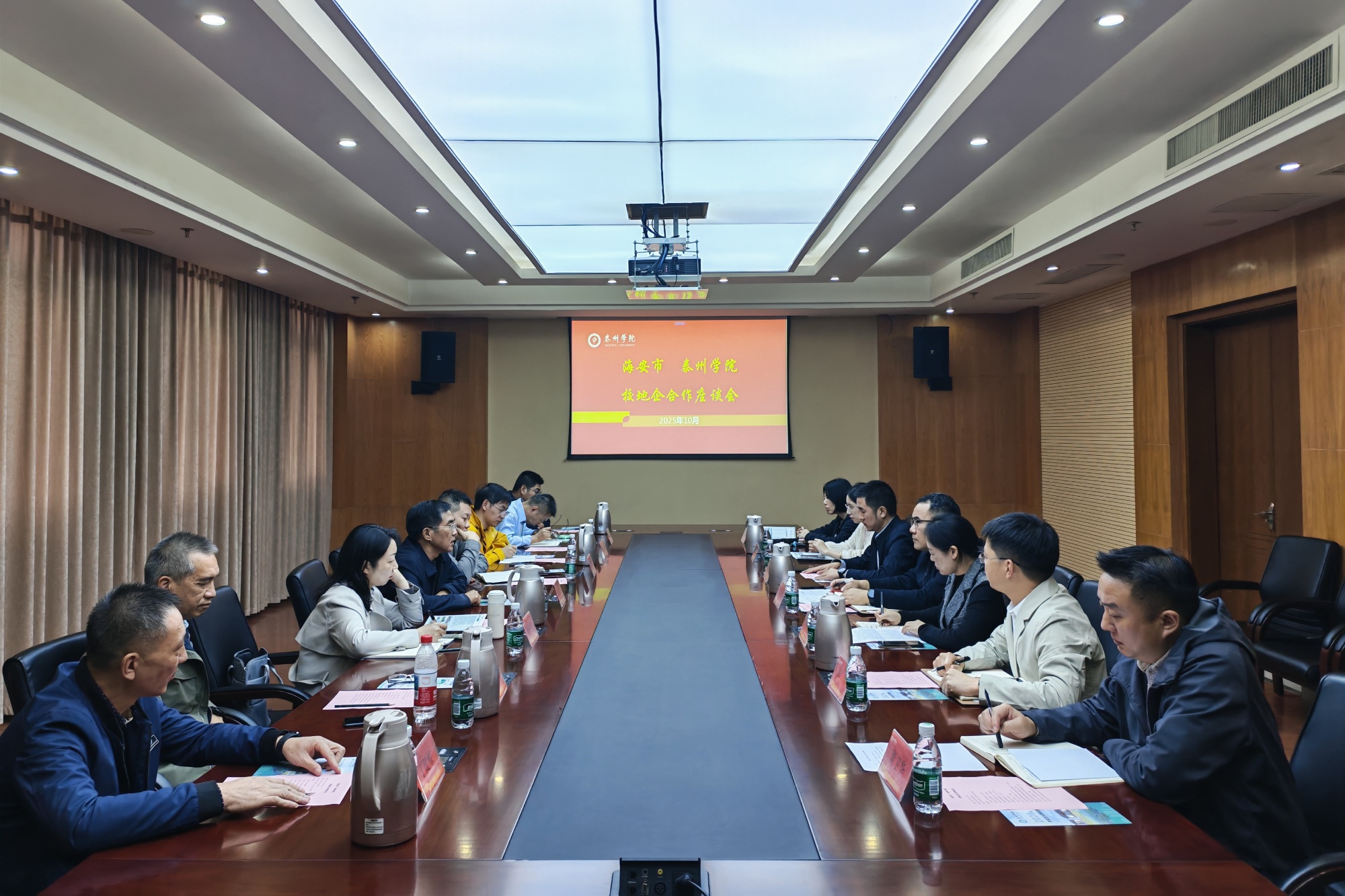 座谈会上,校地企三方立足各自资源优势与发展需求,聚焦校企协同育人、产学研平台共建等交换意见。海安市方面系统介绍了区域产业发展布局与人才政策导向,指出深化校地合作是赋能地方经济高质量发展的重要支撑,期待依托高校学科优势为企业精准输送高素质应用型人才。企业代表结合一线需求,提出了在技术攻关、实习实训、订单式培养等方面的合作意向,表达了共建实践教学基地、促进人才供需对接的强烈意愿。