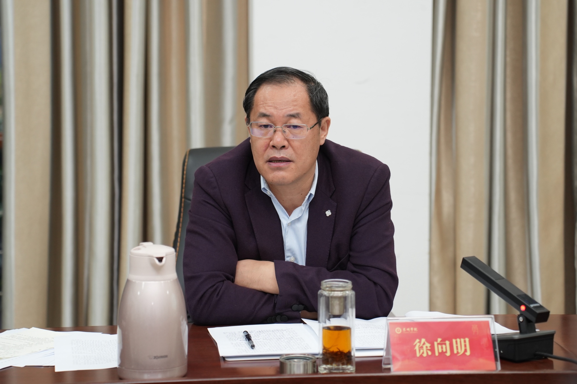 11月4日下午,校党委理论学习中心组在D2109召开集体学习(扩大)会,专题传达学习党的二十届四中全会精神,围绕四中全会“坚持高质量发展”主题,结合学校实际展开深入研讨,研究部署贯彻落实工作。校党委书记徐向明主持会议并领学。