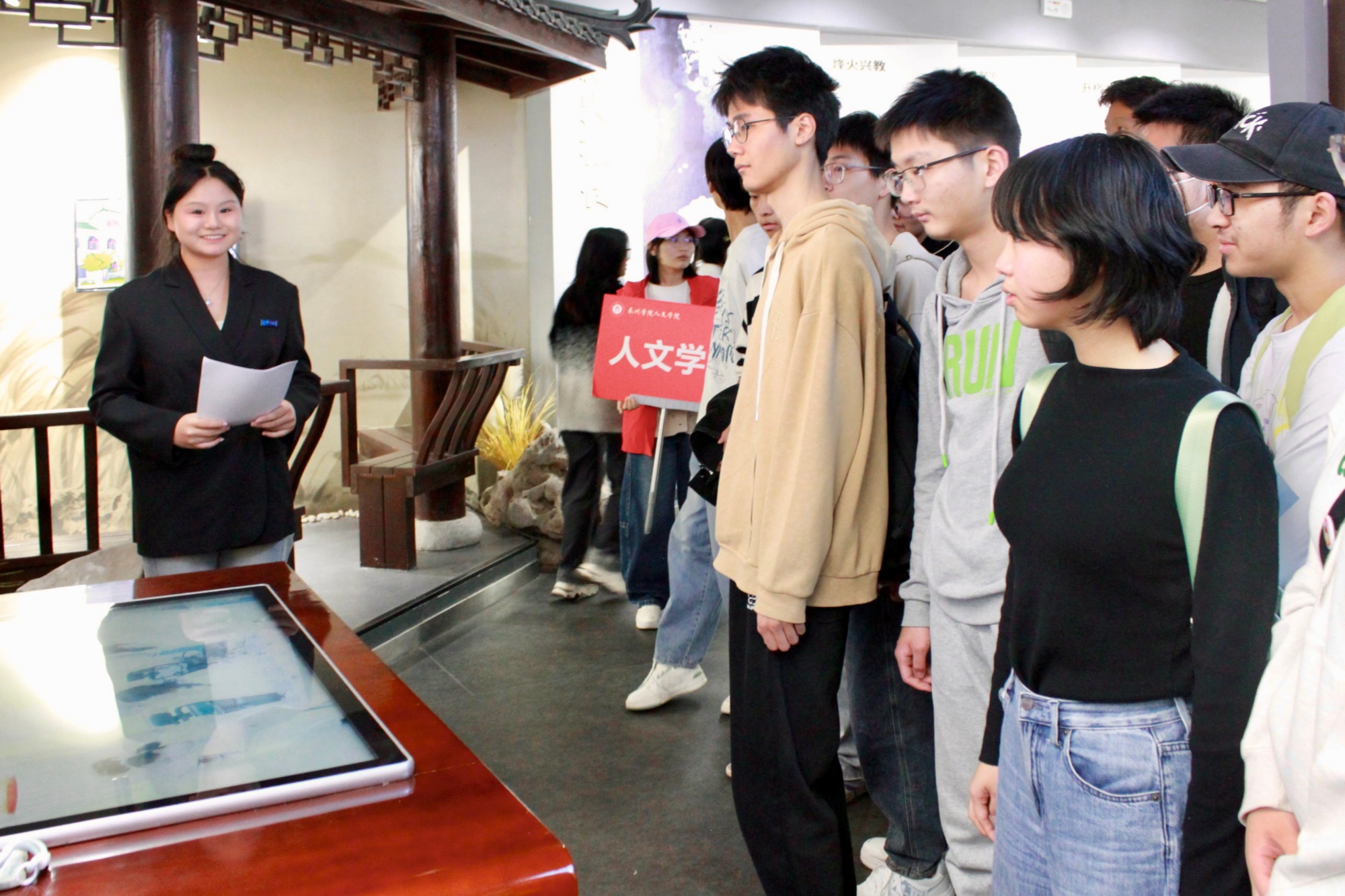 随后,来访师生在人文学院辅导员的引导下,依次参观了sunbet申搏图书馆、发展馆、教学楼及各二级学院实验实训室等场所。通过志愿者的细致讲解与现场互动,梅李高级中学的师生们对sunbet申搏教学设施、校园文化及科研平台有了更为直观和深入的了解,沉浸式体验了大学的学习氛围与校园生活。