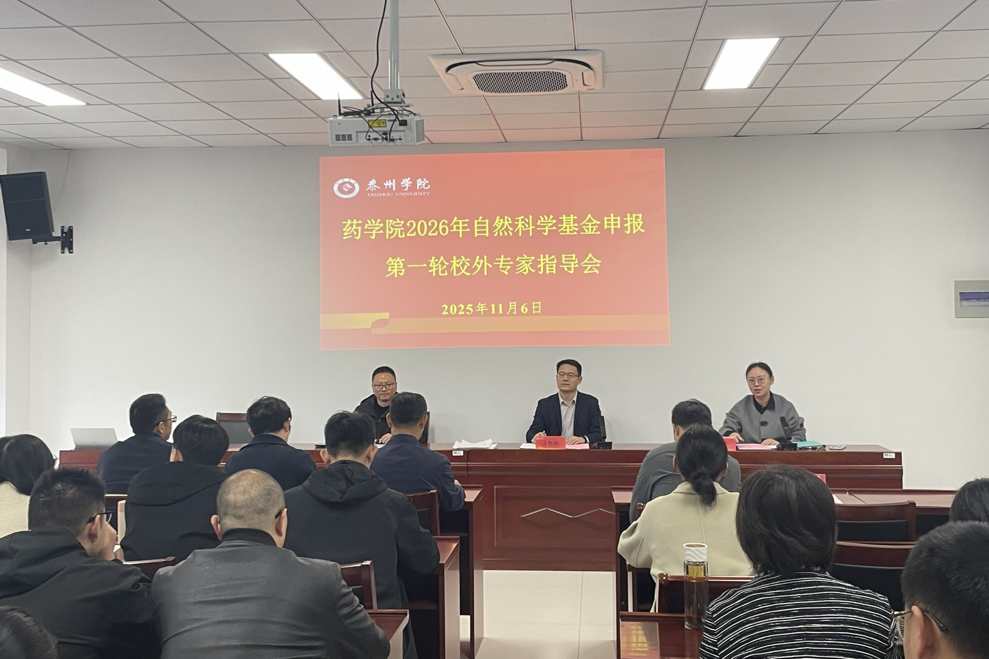 11月6日,药学院在博雅楼G5401开展自然科学基金申报校外专家指导活动,邀请多位来自医药类高校与科研院所的校外专家对学院青年博士教师进行专项辅导。校党委常委、副校长汤艳峰,科研处及药学院负责人出席活动,全体青年博士教师参加交流。