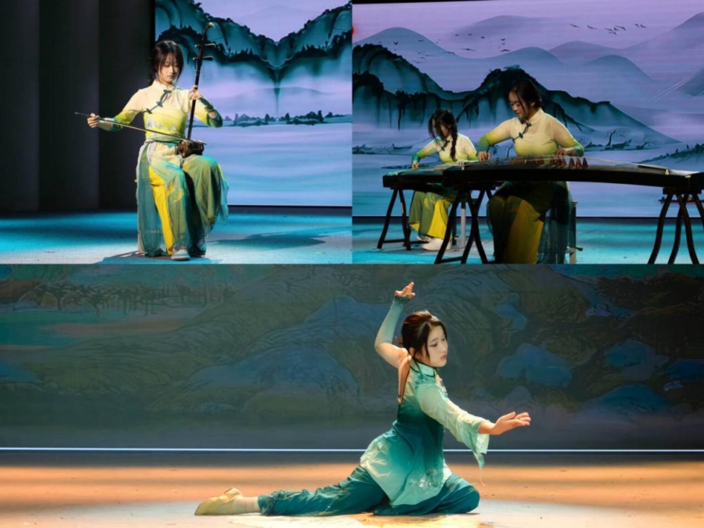 晚会在欢快的开场舞表演中拉开帷幕。《光年之外》演绎穿越星际的深情与执着;小品《没有学习的人不伤心》以轻松诙谐叩问学习真谛;《Latino》舞步翩跹,光影交织,点燃舞台热情。在“统榄万象,逐梦飞扬”篇章中,学院表彰了荣获国家奖学金、全国大学生数学建模竞赛奖项及“数理之星”的优秀学子,彰显榜样力量。古筝二胡合奏配以独舞,一曲一舞融古今,一弦一弓绘山河;相声节目笑语频传,在欢乐中传递反诈智慧;《落叶归根》以温柔声线吟唱游子心声;诗朗诵《少年游》声情并茂,词韵铿锵,尽展少年意气。晚会在全体合唱《我乘着风飞过来》的歌声中圆满结束。