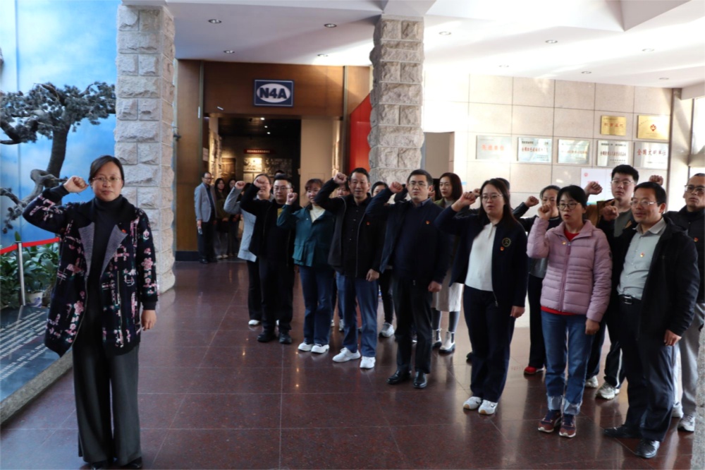 步入纪念馆,在讲解员引领下,大家通过馆内珍贵文物与详实史料,深刻领悟了“不怕牺牲、坚守信念、军民同心”的内涵。随后,党员们面向党旗,庄严举起右拳,重温入党誓词,以铿锵誓言映照立德树人的初心使命。